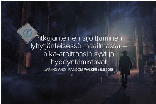 Onneksi asioilla on aina kääntöpuolensa. Nyky-yhteiskunnan lyhytnäköisyys tarjoaa mahdollisuuden niille, jotka sen haluavat hyödyntää. Valtavirrasta poikkeavat yksilöt, jotka ajattelevat ja toimivat pitkäjänteisemmin, saavat arvokkaan edun. Olipa kyse huippu-urheilusta, yrityksen johtamisesta tai sijoittamisesta. Kutsun tätä etua aika-arbitraasiksi. Kun puhumme sijoitusmaailmasta, lyhytjänteisyyden ansaan ovat astuneet yhtä lailla ammattisalkunhoitajat ja analyytikot kuin piensijoittajatkin. Eikä etenkään ammattilaisten kohdalla kyse ole aina edes vahingosta. Tarkastelen tässä kolumnissa ensin lyhytnäköisyyden syitä ja seurauksia, jonka jälkeen pyrin kuvaamaan kuinka tätä lyhytjänteistä valtavirtaa vastaan toimiva sijoittaja voi hyötyä.