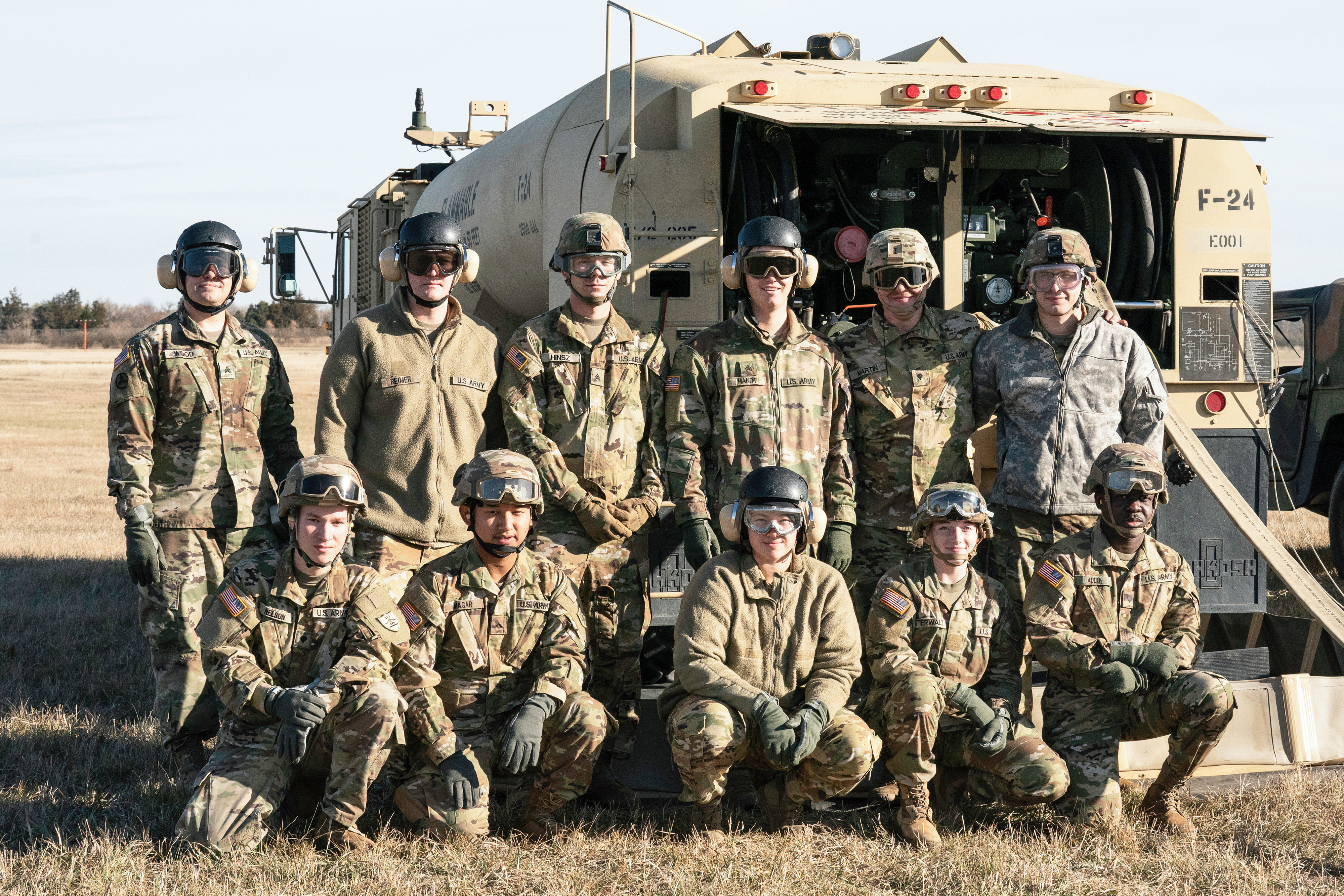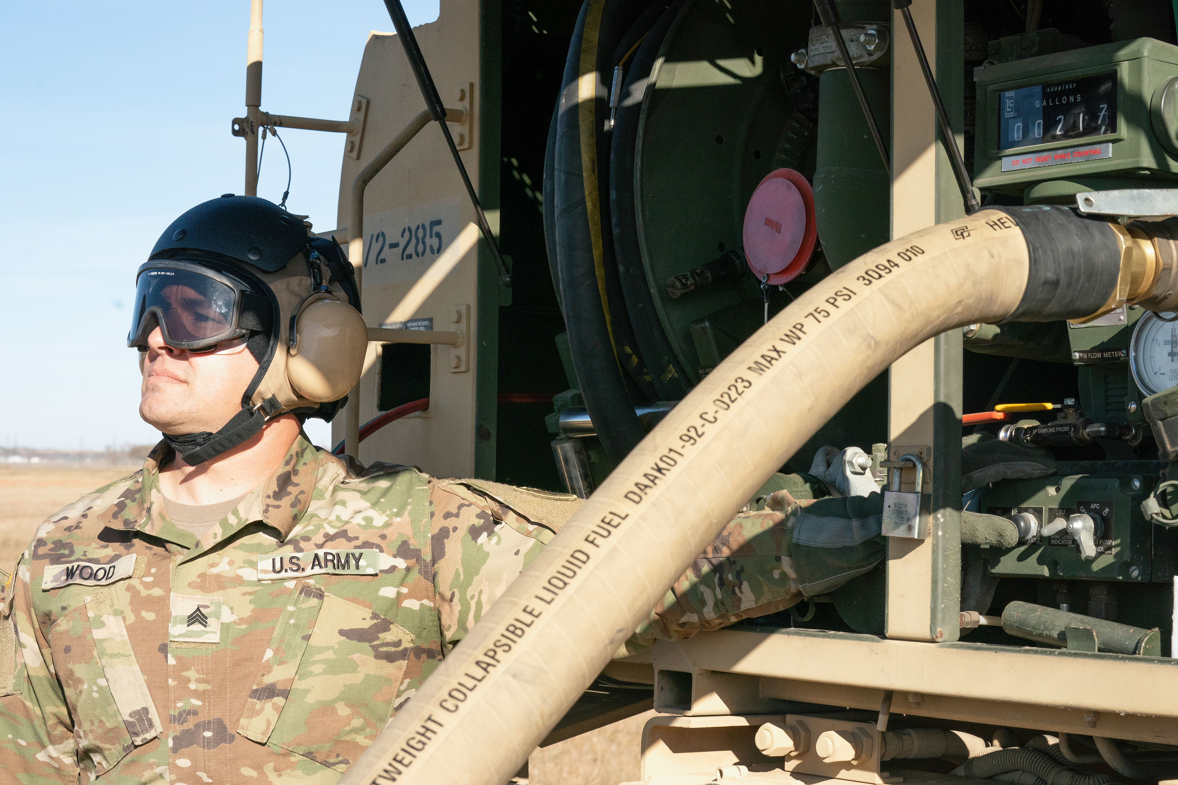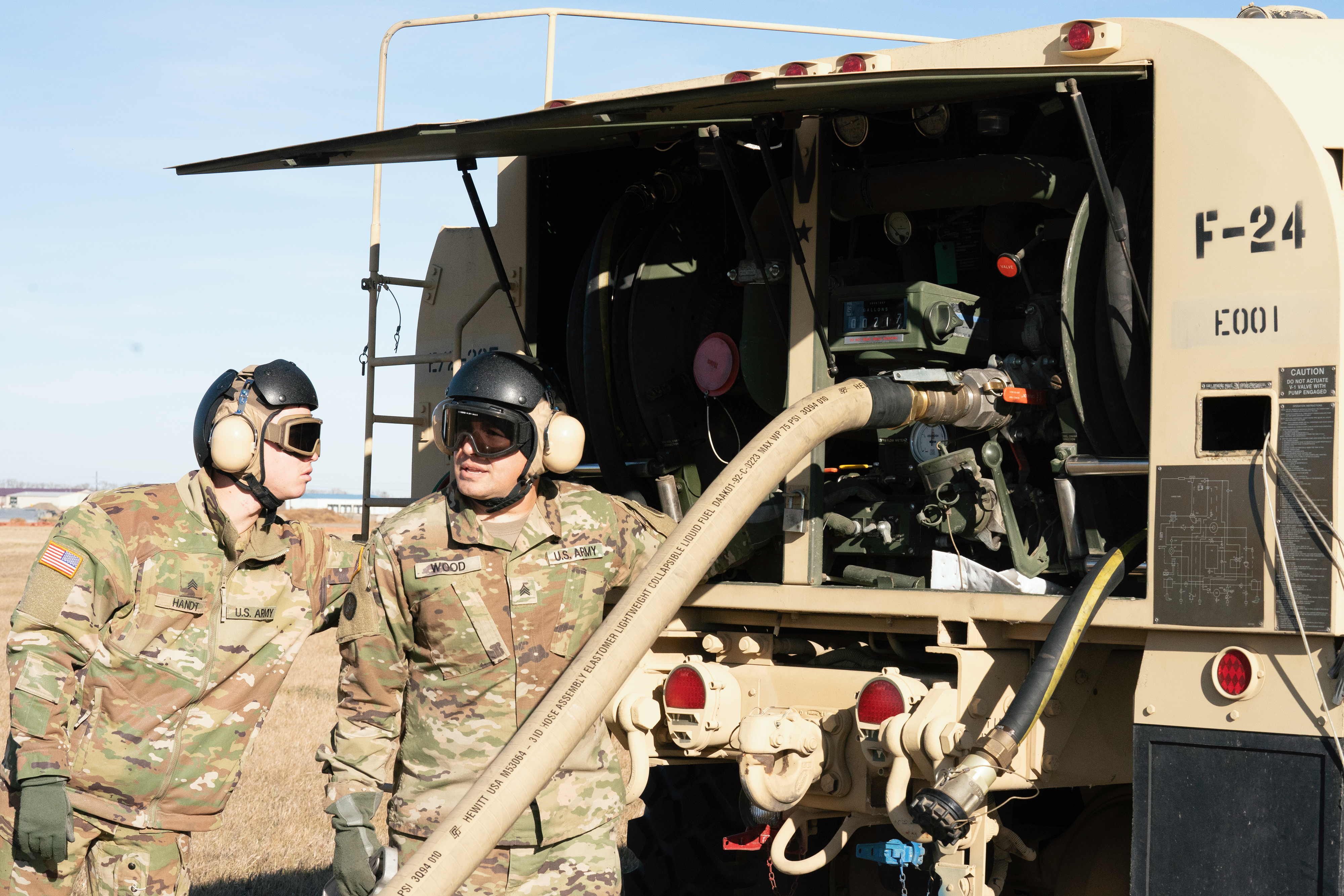 The fueling section within the distribution platoon in the Forward Support Company, 142nd Engineer Battalion trained in FARP (Forward Arming and Refueling Point) operations with aviation Soldiers at the Army Aviation Support Facility, Bismarck, Oct. 30, 2022. (National Guard story by Capt. Vanessa Lennick, N.D. National Guard Visual Information)