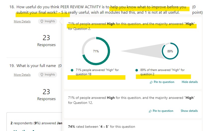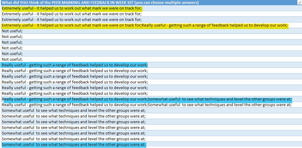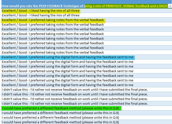 Summary of student feedback: