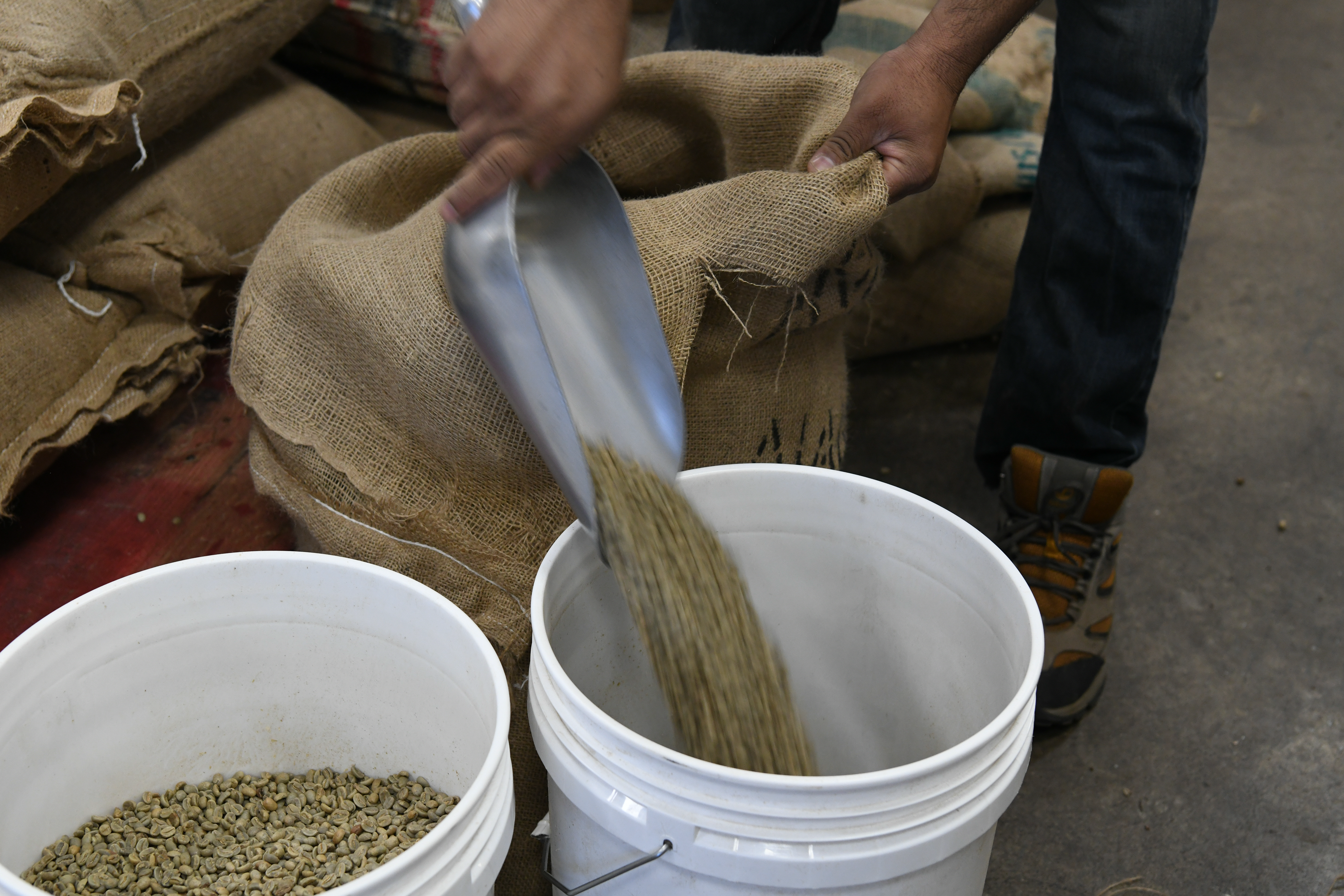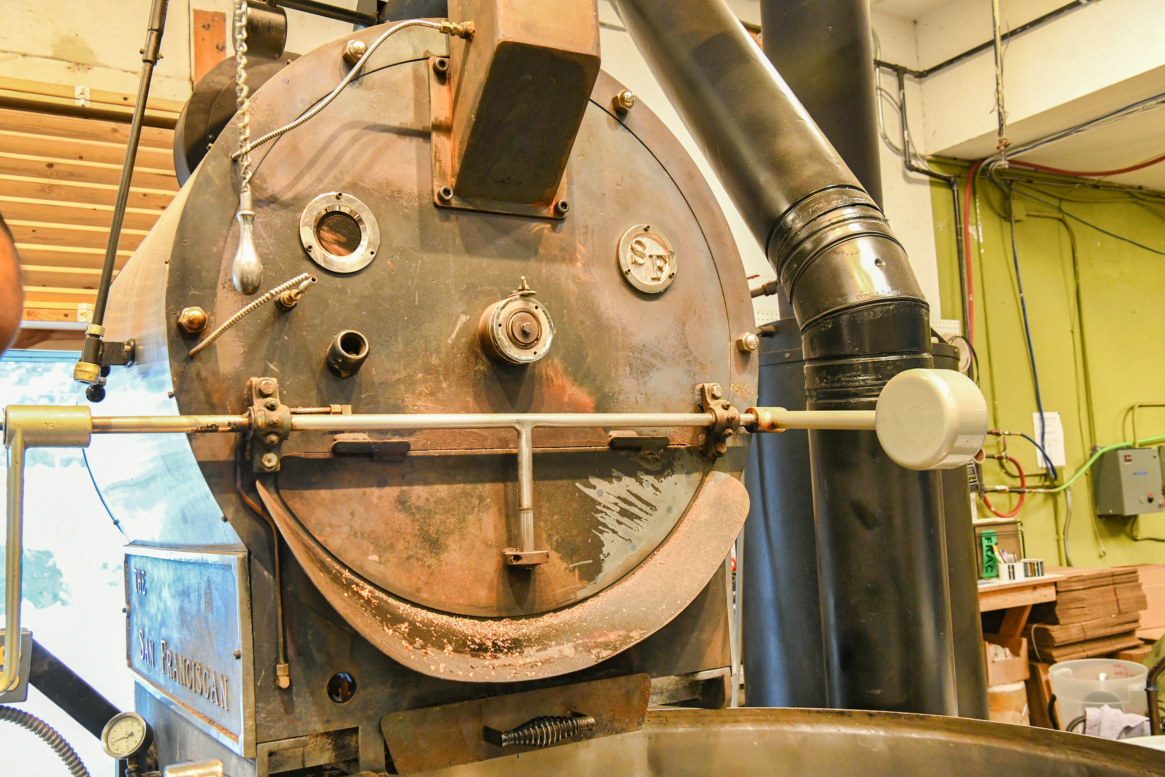 Through an unobtrusive glass one can view all steps involving this esteemed coffee business, from breaking a burlap sack of unroasted green coffee bean to slapping a label onto a 12 oz whole bean coffee packet and all the daily tasks in between.