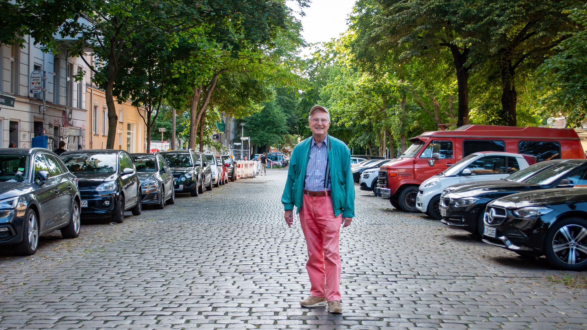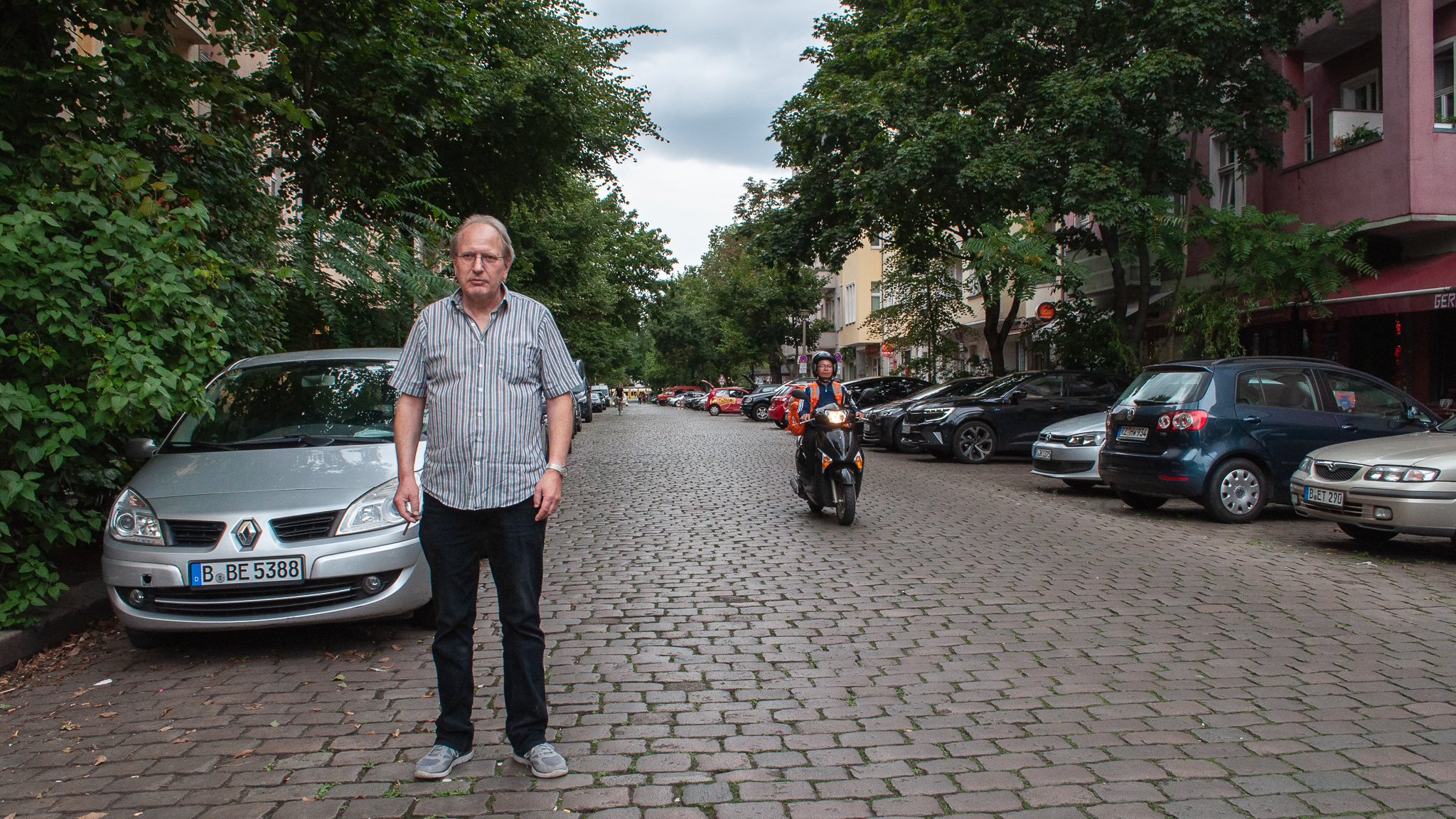 G: Es gibt ja Pläne zur Verkehrsberuhigung hier in der ganzen Gegend. Ein Teil der Holteistrasse soll komplett zur Fußgängerzone werden. Und es gibt die Idee, auch den Teil entlang des großen Parks zur Fussgängerzone zu machen. Mit einer Tram im Schritttempo, so wie z.B. am Alex. Was denkst du darüber?
