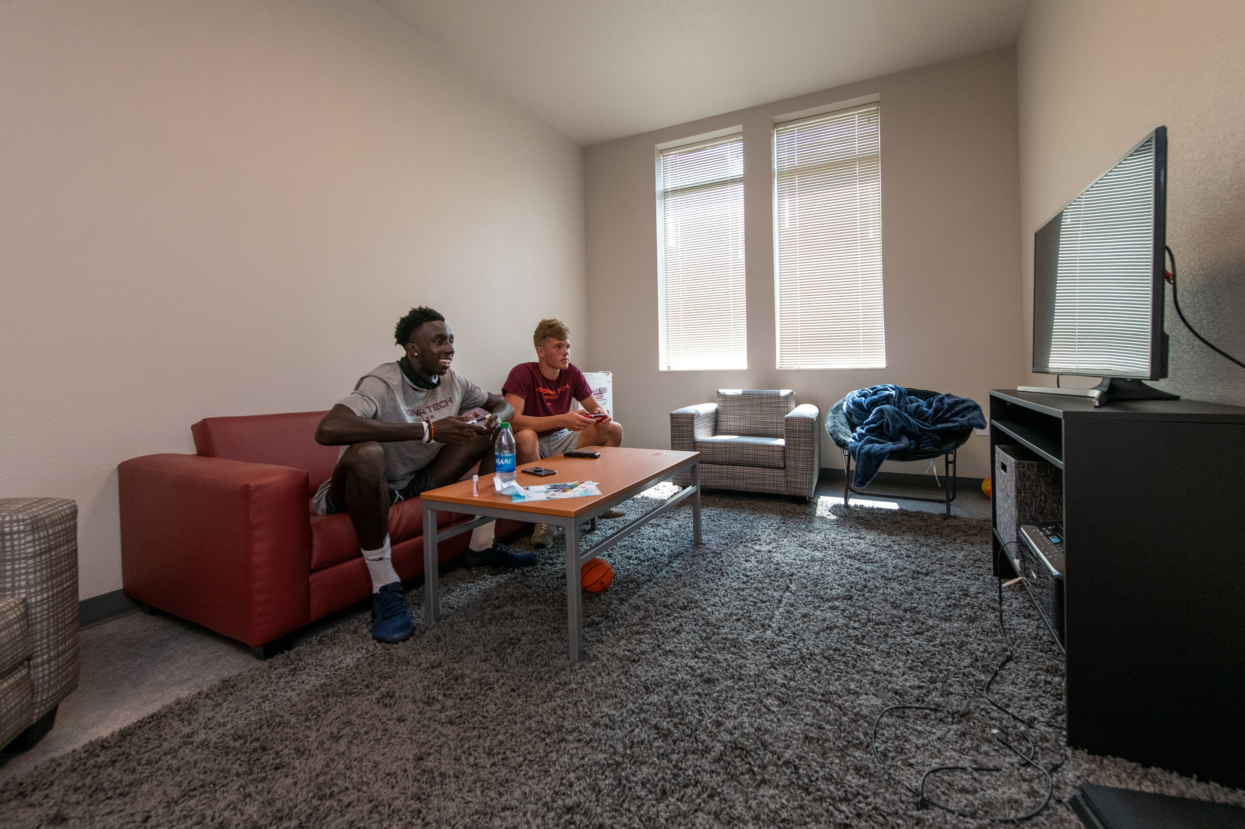 Virginia Tech men's soccer team train in the 6,000-squarefoot Street Olympic Sports Training Center. The two-tiered facility includes a lower level dedicated to strength training and a unique 1,800-square foot mezzanine level dedicated to functional movement, which helps prevent injuries.