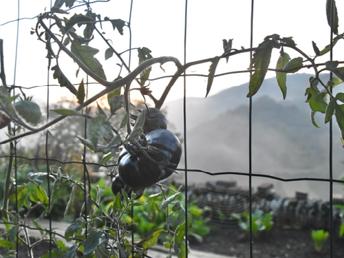 Joli endroit que ce gîte du Mimentois, au jardin luxuriant et sa variété de tomates de Crimée, mais seule la peau est noire. Aishah aussi doit être rose à l’intérieur !!!