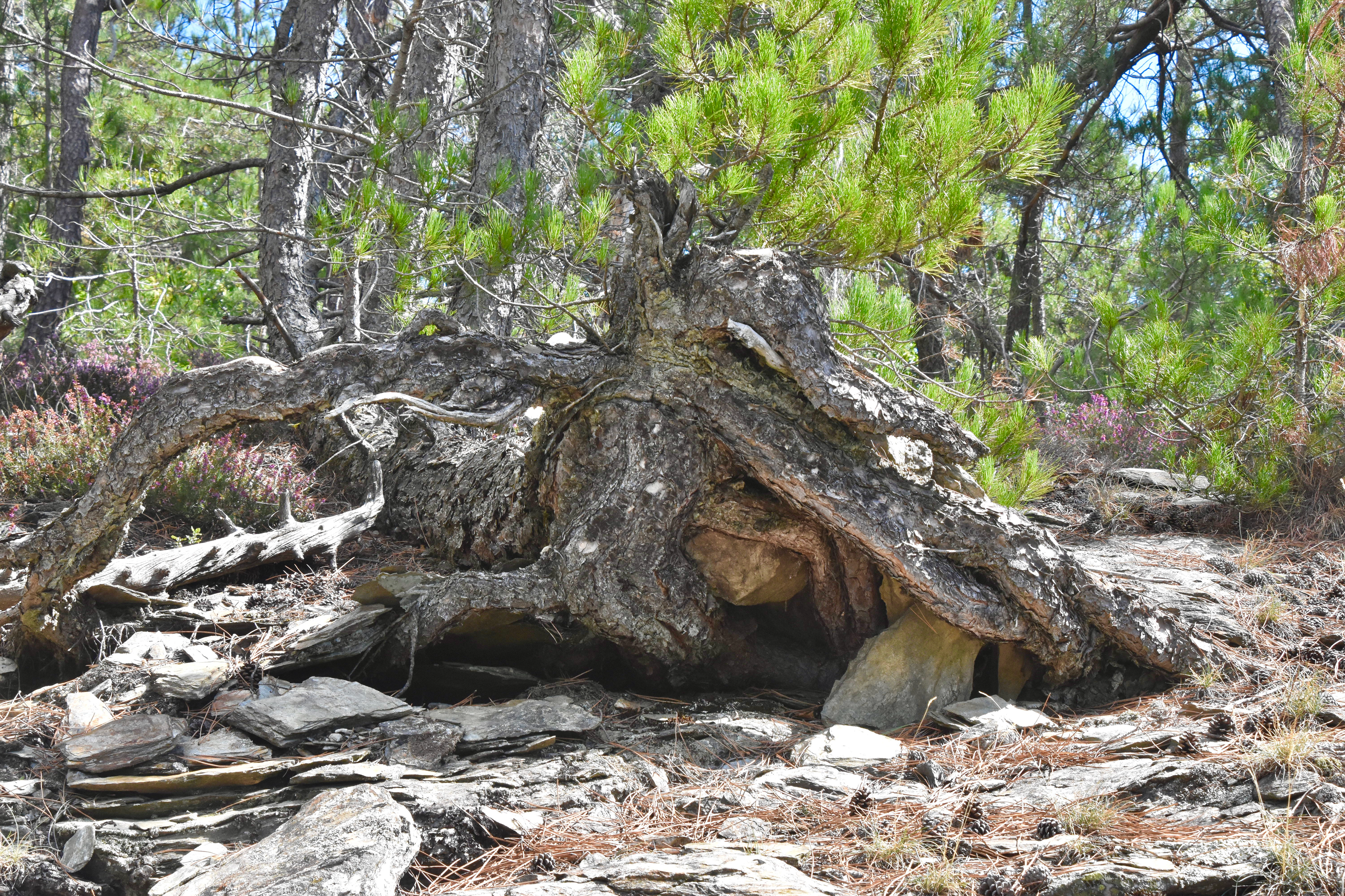 Les racines tortueuses se fraient un chemin en tout lieu.