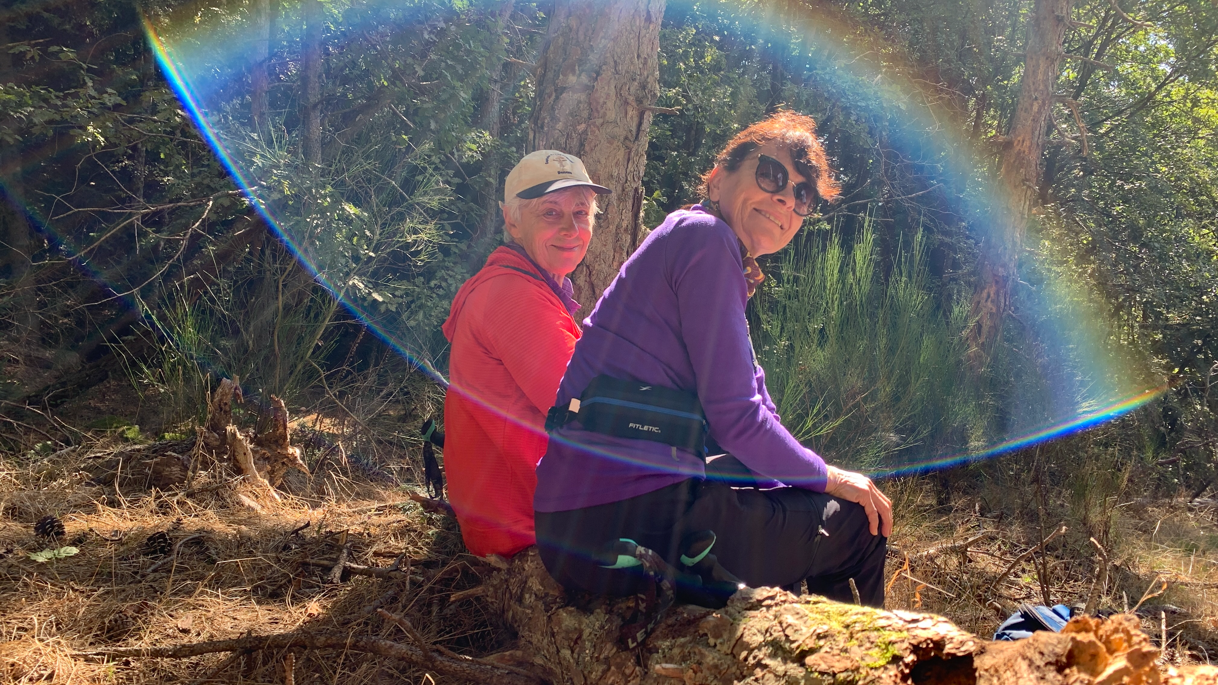 Reflets dans le Gardon de Saint-Germain, puis pause “ chouchou “ à Saint-Martin-de-Lansuscle, et vue à travers ce prisme arc-en-ciel, qui fait mentir sa définition et ne déforme nullement Viviane et Catherine. Une histoire de saints !