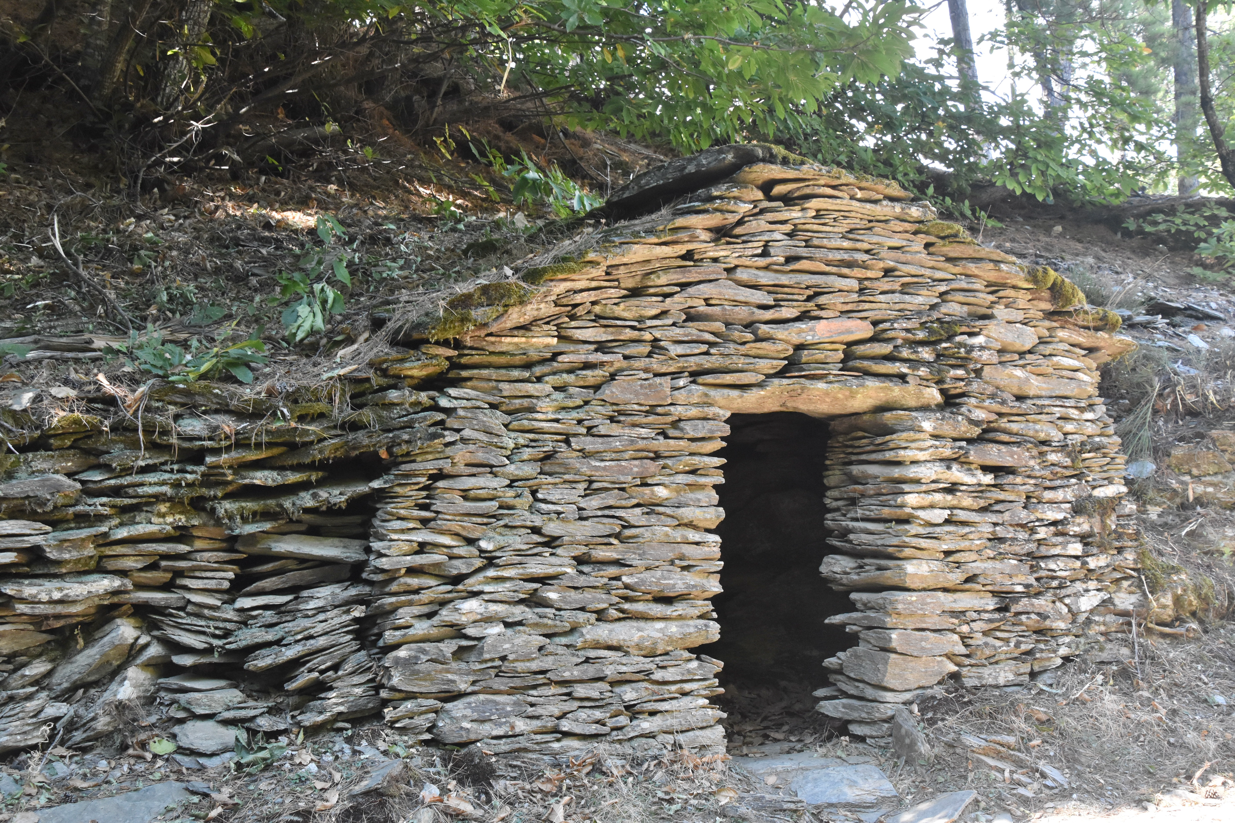 Les abris quasi troglodytes et les murs en pierres plates.