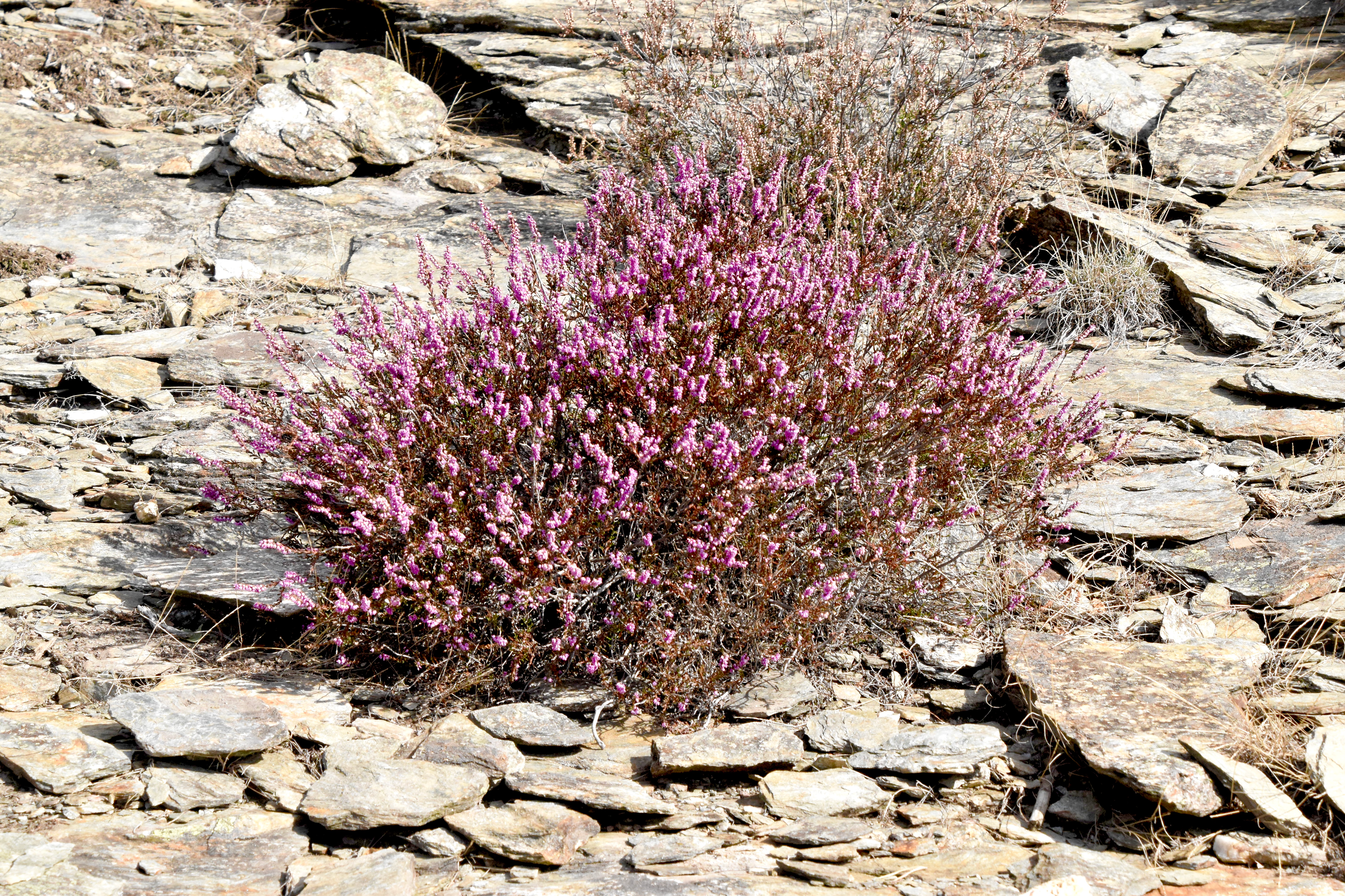 Le schiste. dans toute sa splendeur, si étincelant à contre-jour et si terne à contre-sens. Même illuminé par les bruyères.