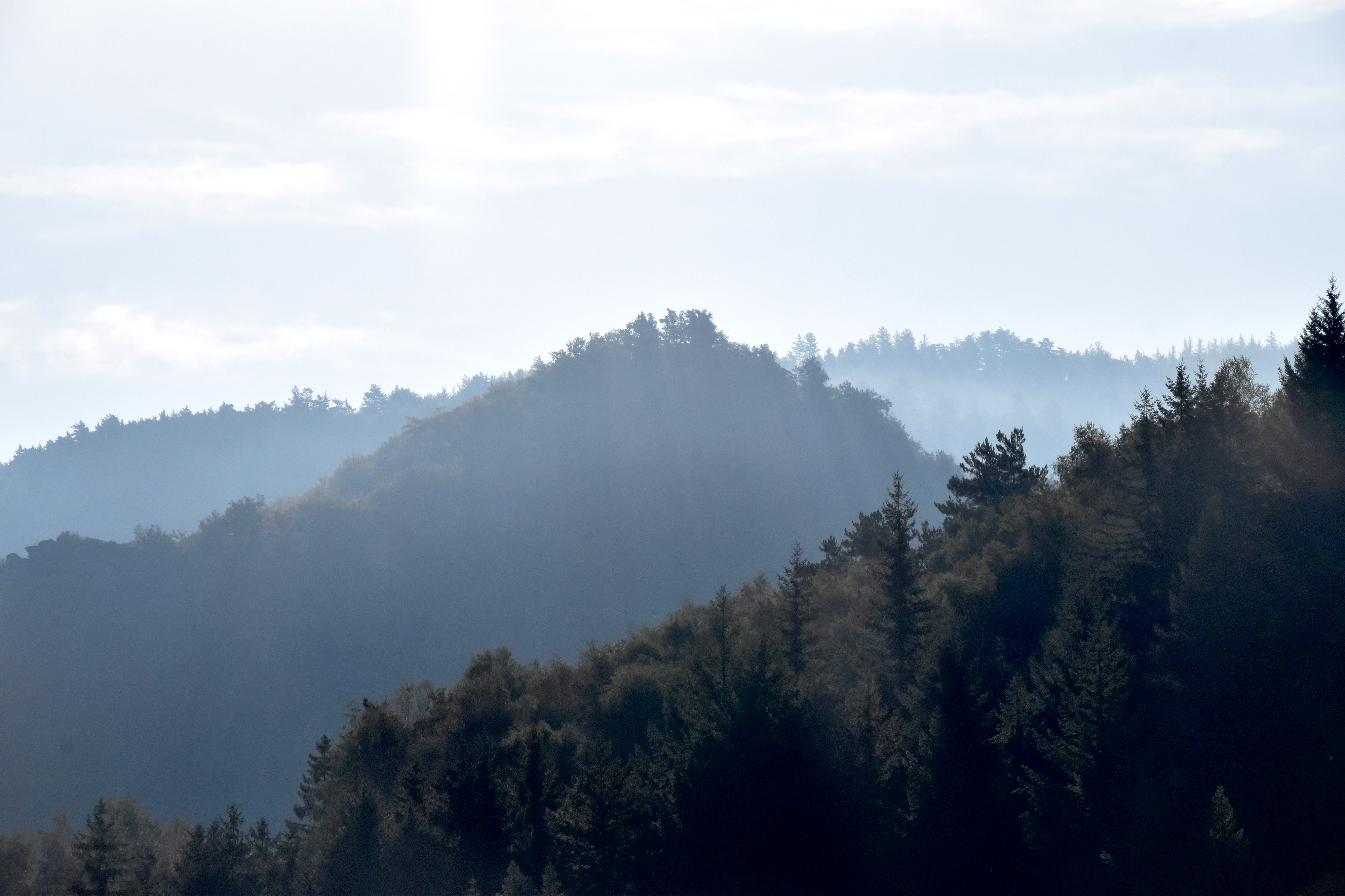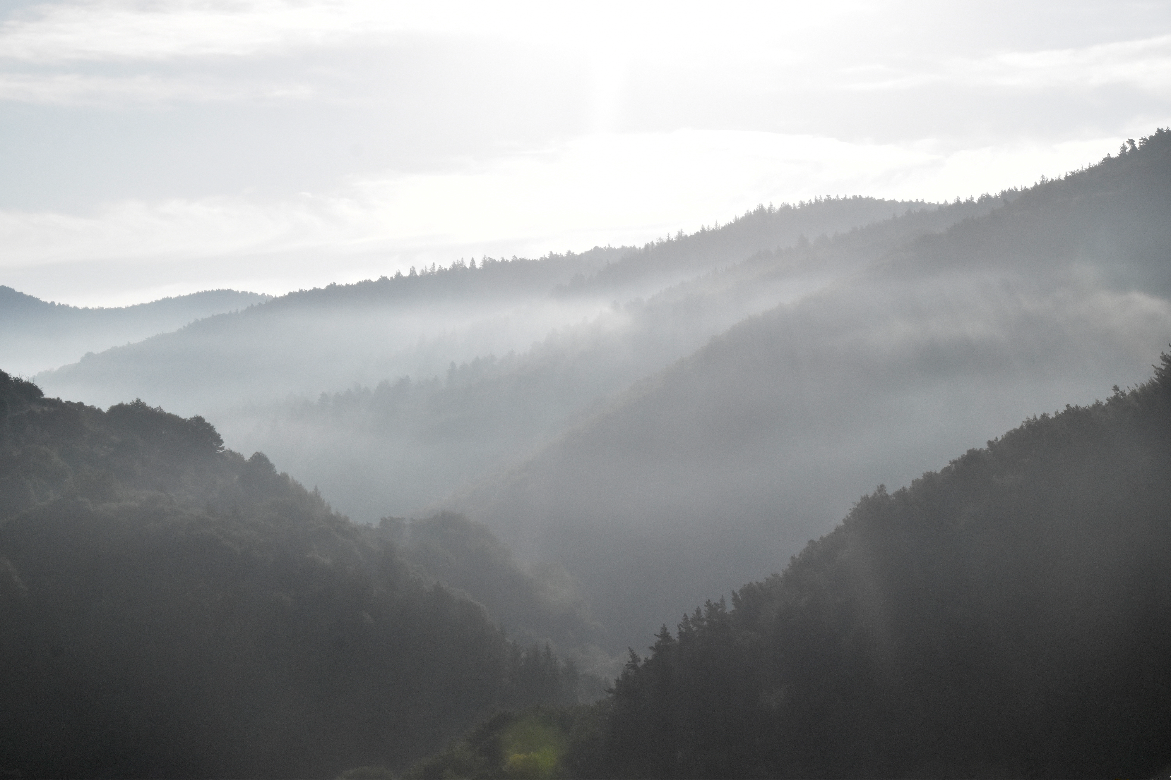 Lever de soleil sur la vallée de la Mimente, brume et brouillard matinaux qui se sont vite dissipés. Départ “ on time “ comme chaque jour. Notre hôte à l’instar d’hier nous indique un raccourci, hélas qui ne le sera pas pour nous, car j’avais déjà anticipé et tracé ce chemin depuis le gîte. Zut alors !
