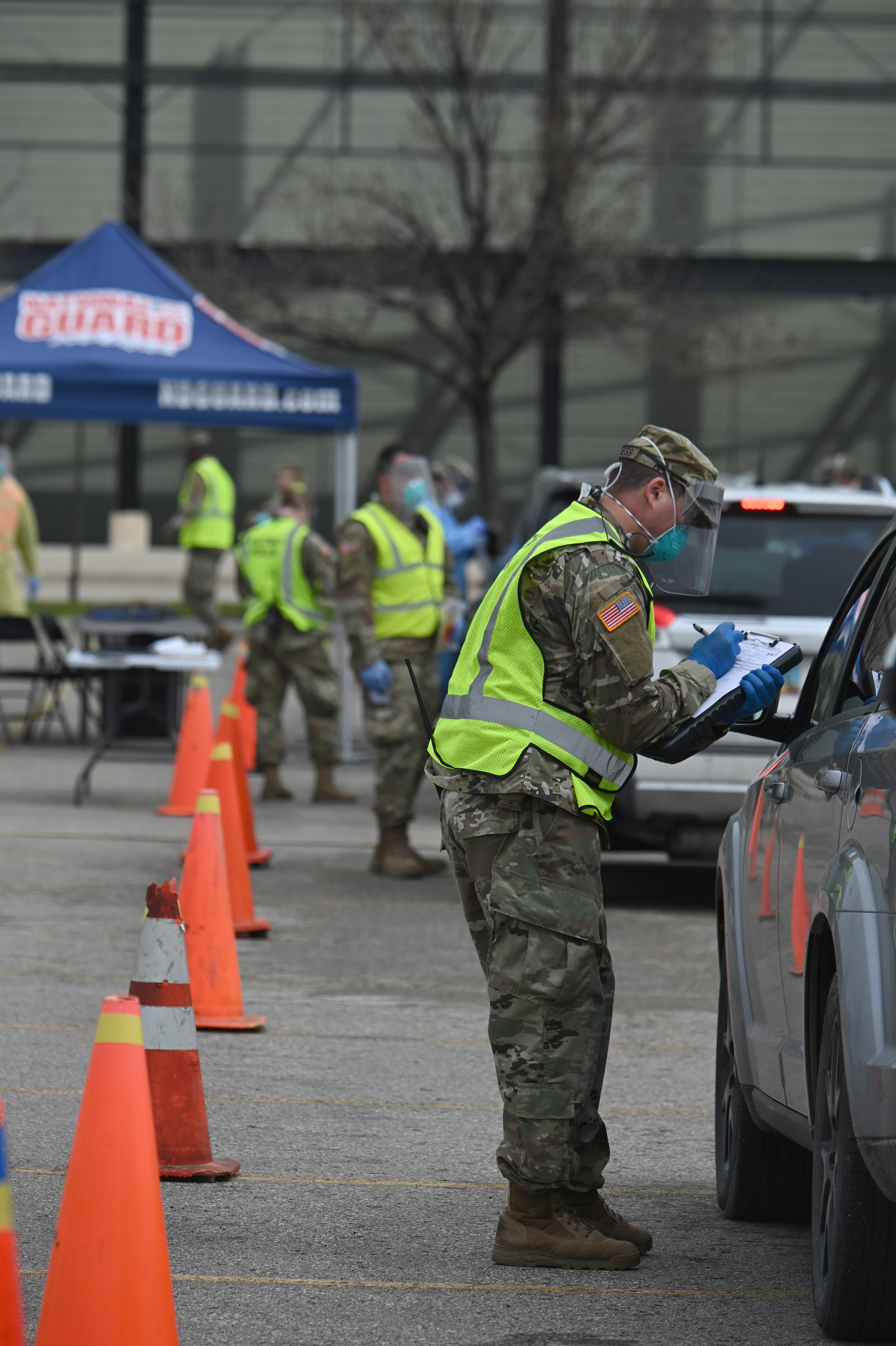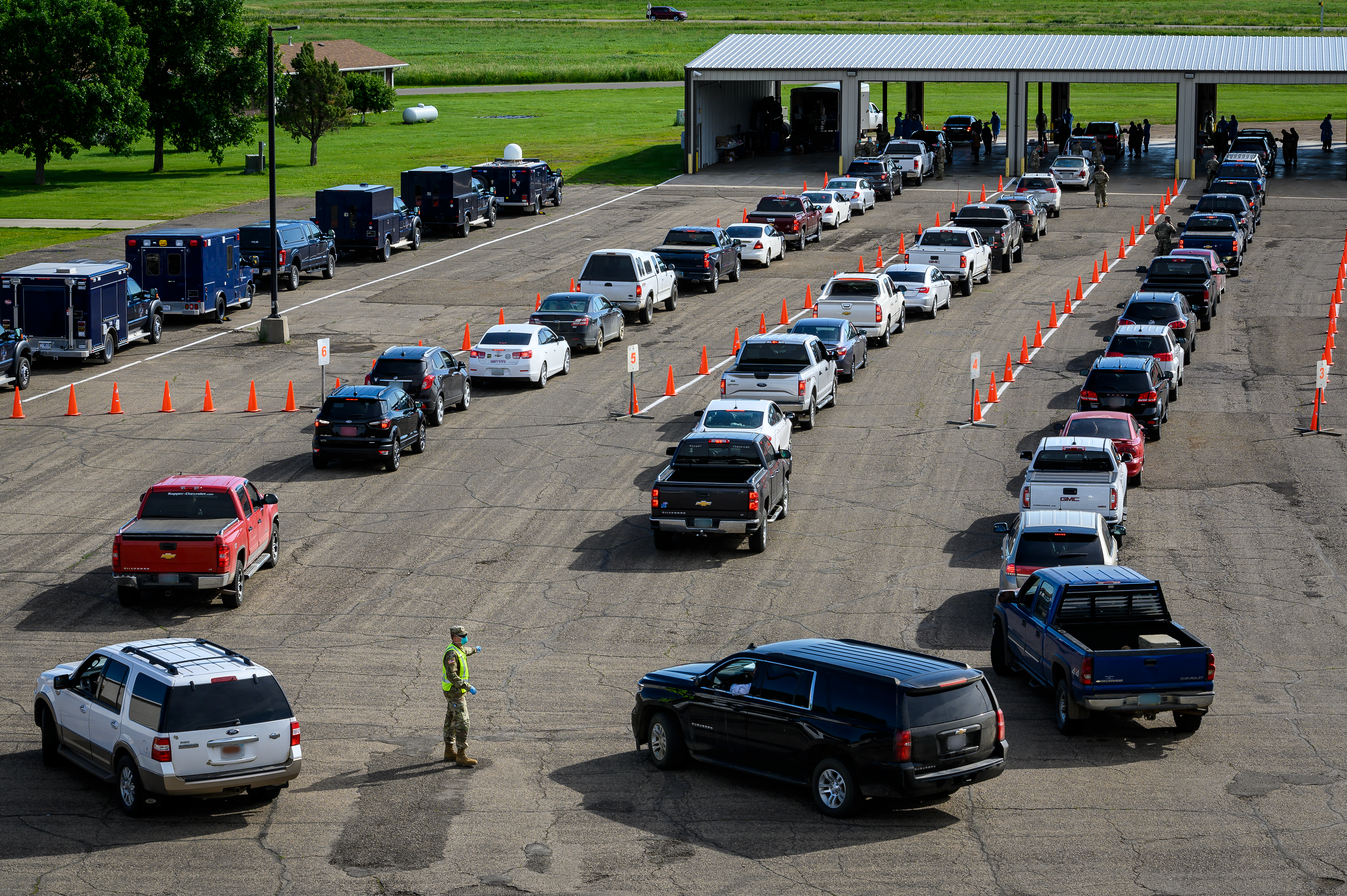 The North Dakota National Guard assists in COVID-19 mobile testing site in Standing Rock, N.D., June 20, 2020. (National Guard photo by Sgt. 1st Class Brett Miller, 116th Public Affairs Detachment)