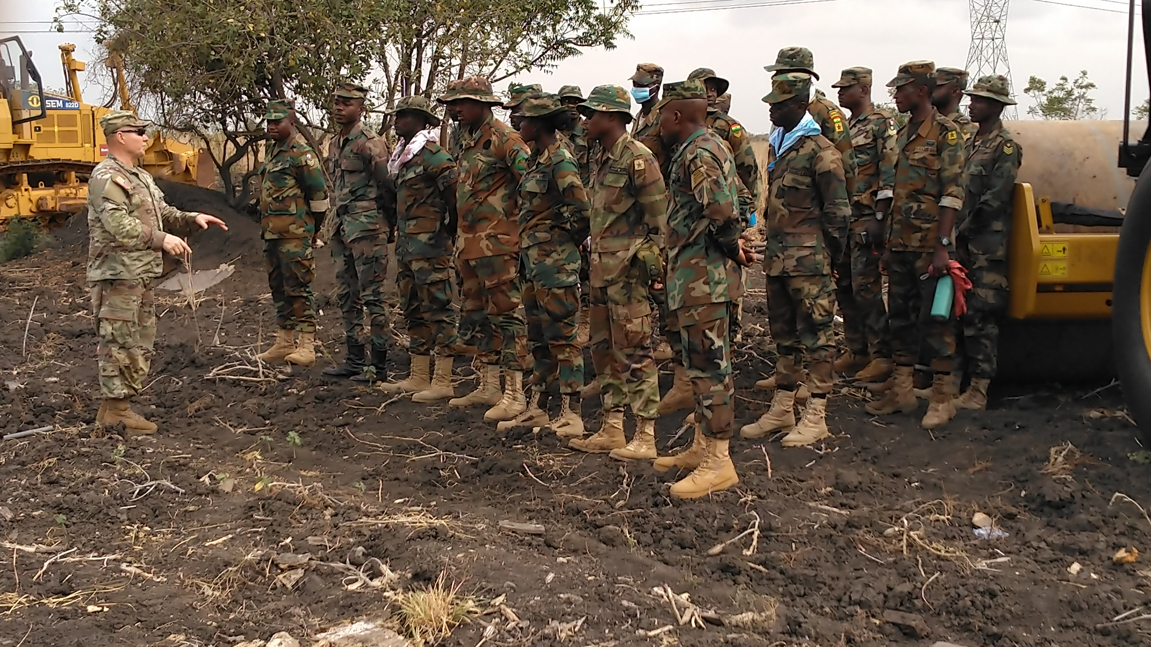 Key points during briefings is that safety is the first priority, and that daily maintenance is absolutely mandatory on heavy engineer equipment. The Ghanaian Army engineers were encouraged to ask questions to help ensure they were comfortable with this equipment. The GAF engineers are scheduled to receive this same style of CAT equipment in 2023: Bulldozer, backhoe, excavator, grader, vibratory roller, and water truck.