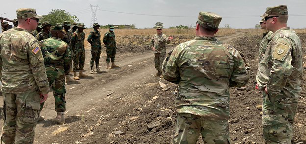N.D. National Guard Engineer Soldiers are traveled to Africa to conduct familiarization and road construction training on heavy horizontal equipment with Ghana Armed Forces (GAF) Engineers at the Bundase Training Camp in Ghana, March 14 to April 2, 2022. (National Guard story and photos by Staff Sgt. Neil Horner, 141st Maneuver Enhancement Brigade)
