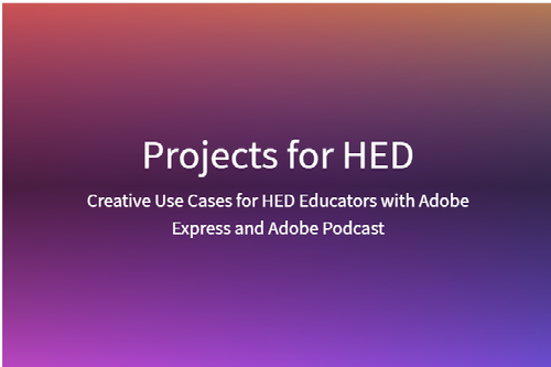 Below, you'll find a series of curated HED assessment templates and video tutorials showcasing a wide range of creative projects made with Adobe Express or Adobe Podcast.