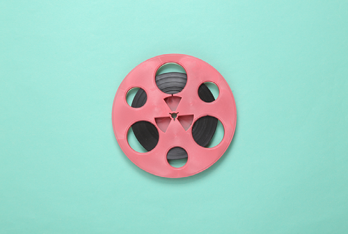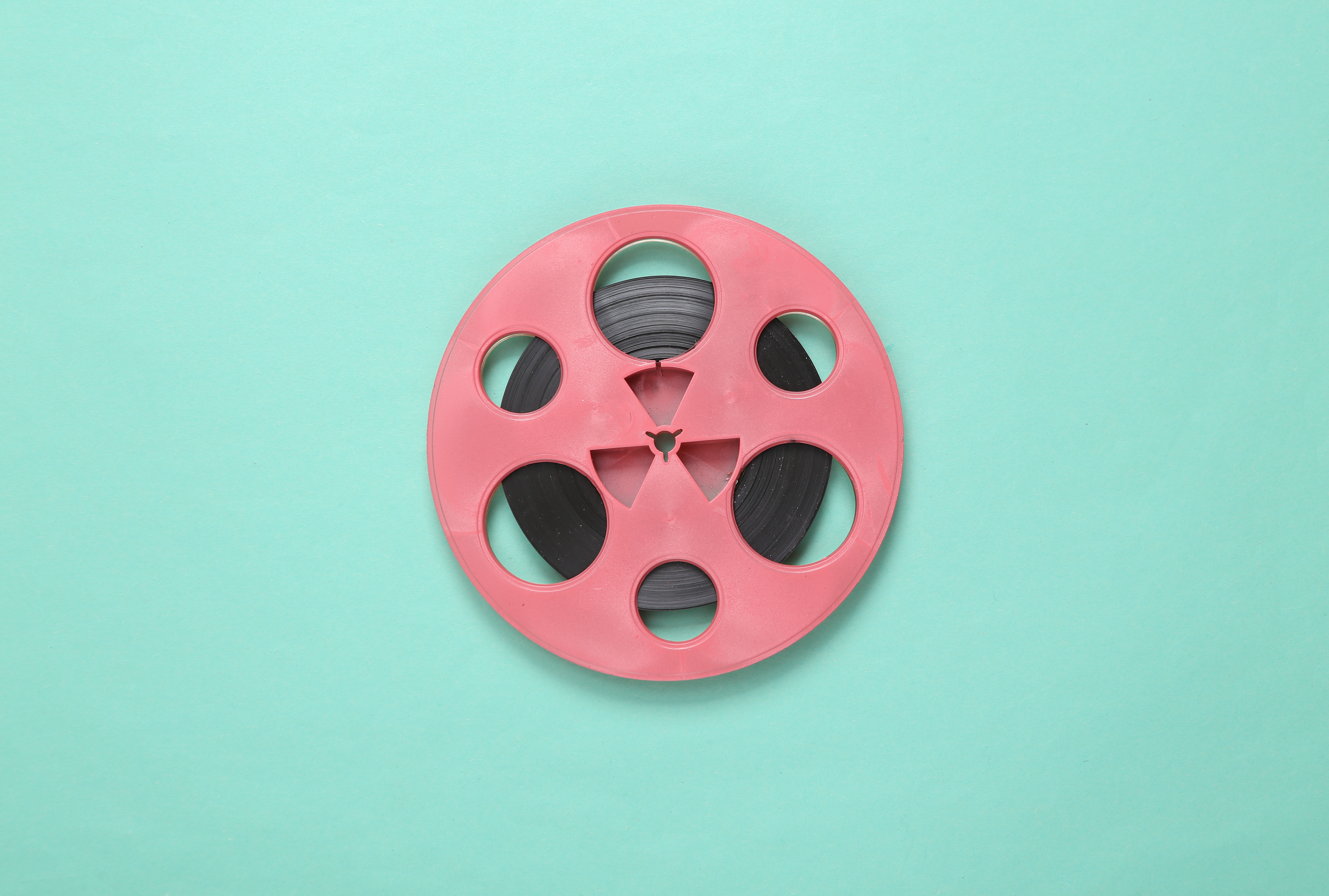 Created with an image by splitov27 - "Pink retro audio reel on blue background. Minimalism music concept. Top view"