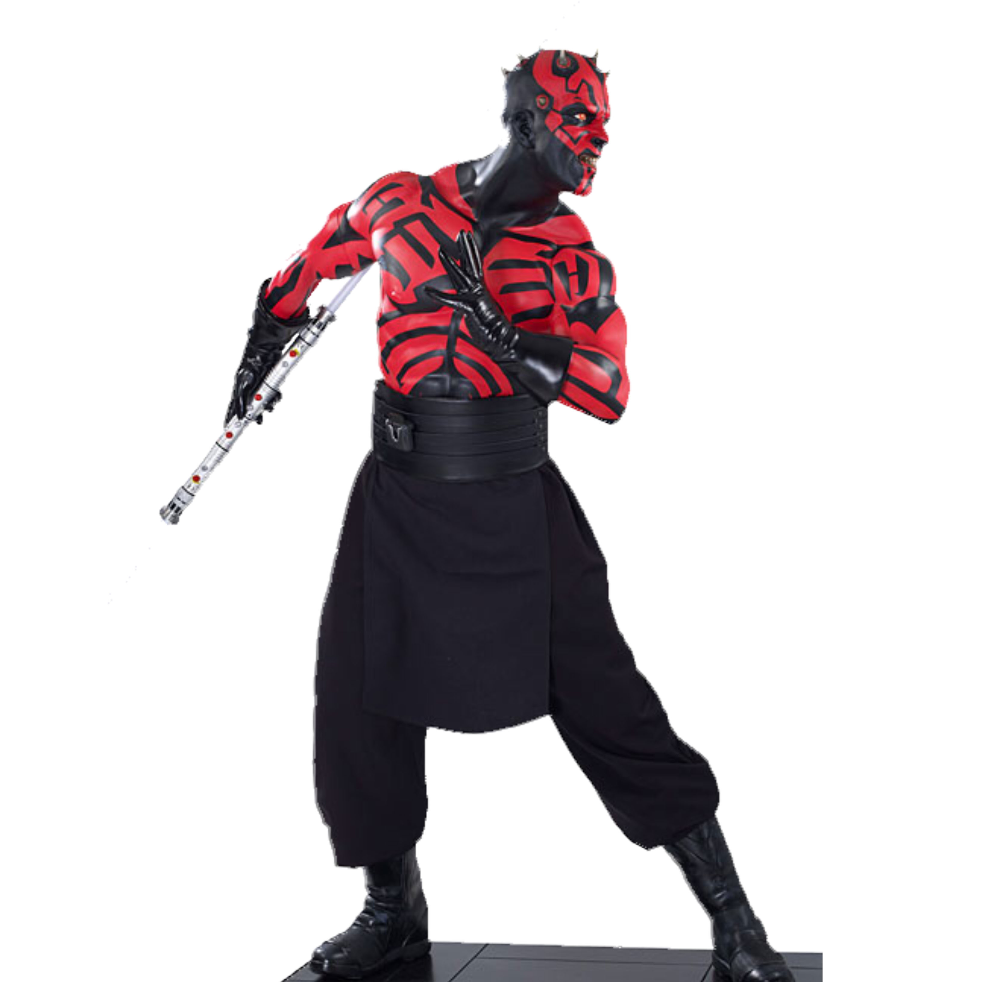 Die Firma Sideshow stellt Star Wars Statuen in ¼ Scale her. Sideshow verwendet mehrere Materialien für die Statuen und kombiniert diese miteinander. In der Regel besteht eine Statue aus Polystone und wird mit Gewand aus Stoff ausgestattet, diese Art der Materialverwendung wird Mixed Media genannt. Die Base und die Statue sind nicht miteinander verbunden, in den Füßen der Statuen sind kleine Metallstifte, welche den einwandfreien Stand auf der mitgelieferten Base ermöglichen. Die Jedi- und Sith-Statuen haben eine Leuchtfunktion des Lichtschwertes. Strom bekommt die Statue entweder über ein mitgeliefertes Netzteil oder über Batterien in der Base. Die Leuchtfunktion wird ebenfalls über die Base ein- und ausgeschaltet. Wenn es sich nicht um eine Exclusive-Variante einer Statue handelt, ist diese in der Regel aus einem Guss, sprich es müssen nur Statue und Base miteinander verbunden werden. Bei den Exclusive-Statuen gibt es die verschiedensten Dinge, wie zum Beispiel austauschbare Köpfe, Arme oder Waffen und etwaiges Zubehör wie Mouse-Droide oder Jedi Training Remote und so weiter. Die Statuen sind sehr detailgetreu und hochwertig verarbeitet. Sideshow glänzt hier mittlerweile mit einer unglaublichen Akkuratheit, was vor allem den Facesculpt angeht, viele Statuen sind den Schauspielern wie aus dem Gesicht geschnitten.