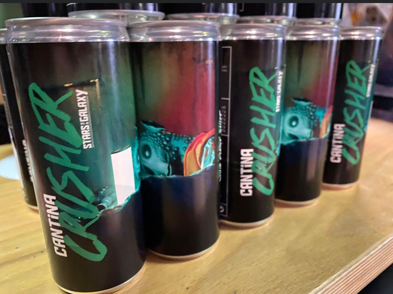 Zu sehen ist die berühmte Szene aus Episode IV - Eine neue Hoffnung, in der Obi-Wan Kenobi mit seinem Lichtschwert in der Mos Eisley Cantina auf Tatooine Luke Skywalker beschützt und Pondo Baba einen Arm kürzer macht.