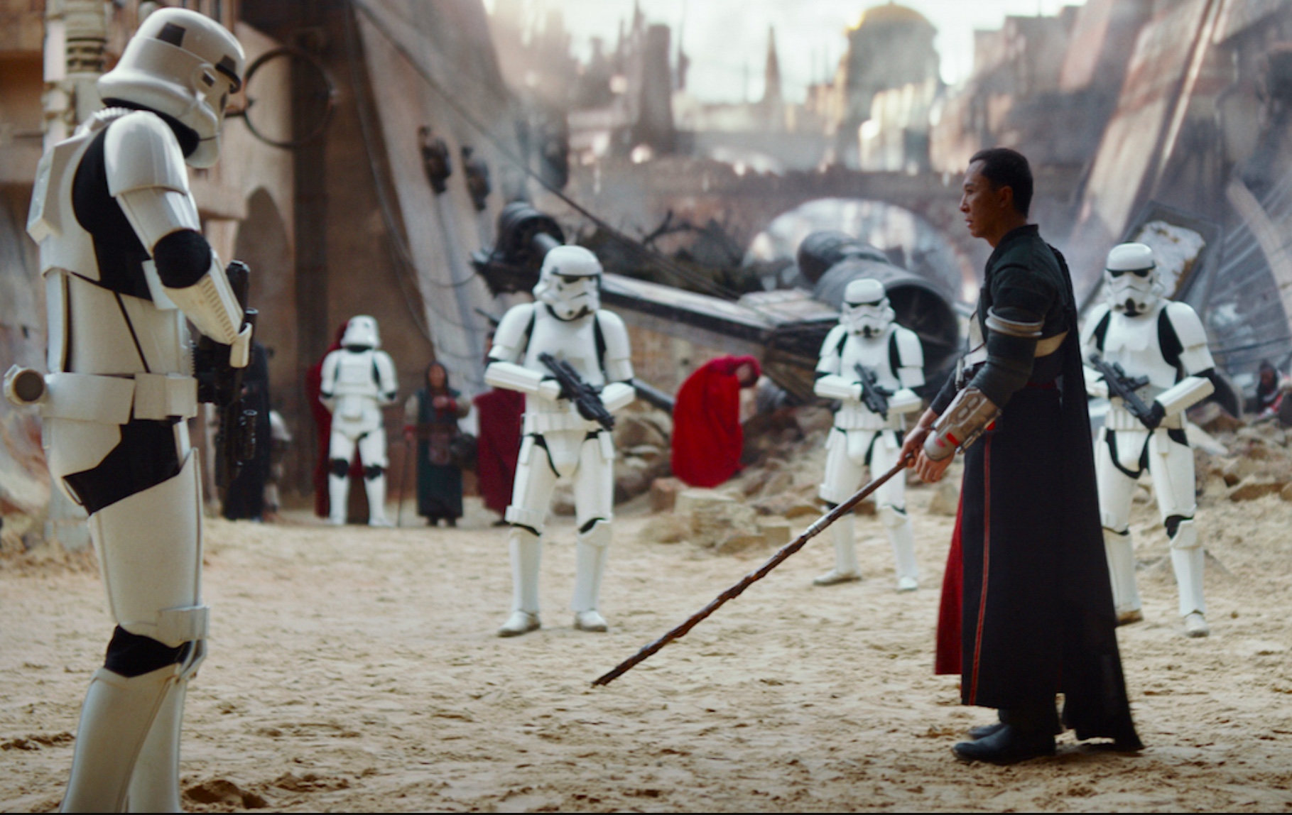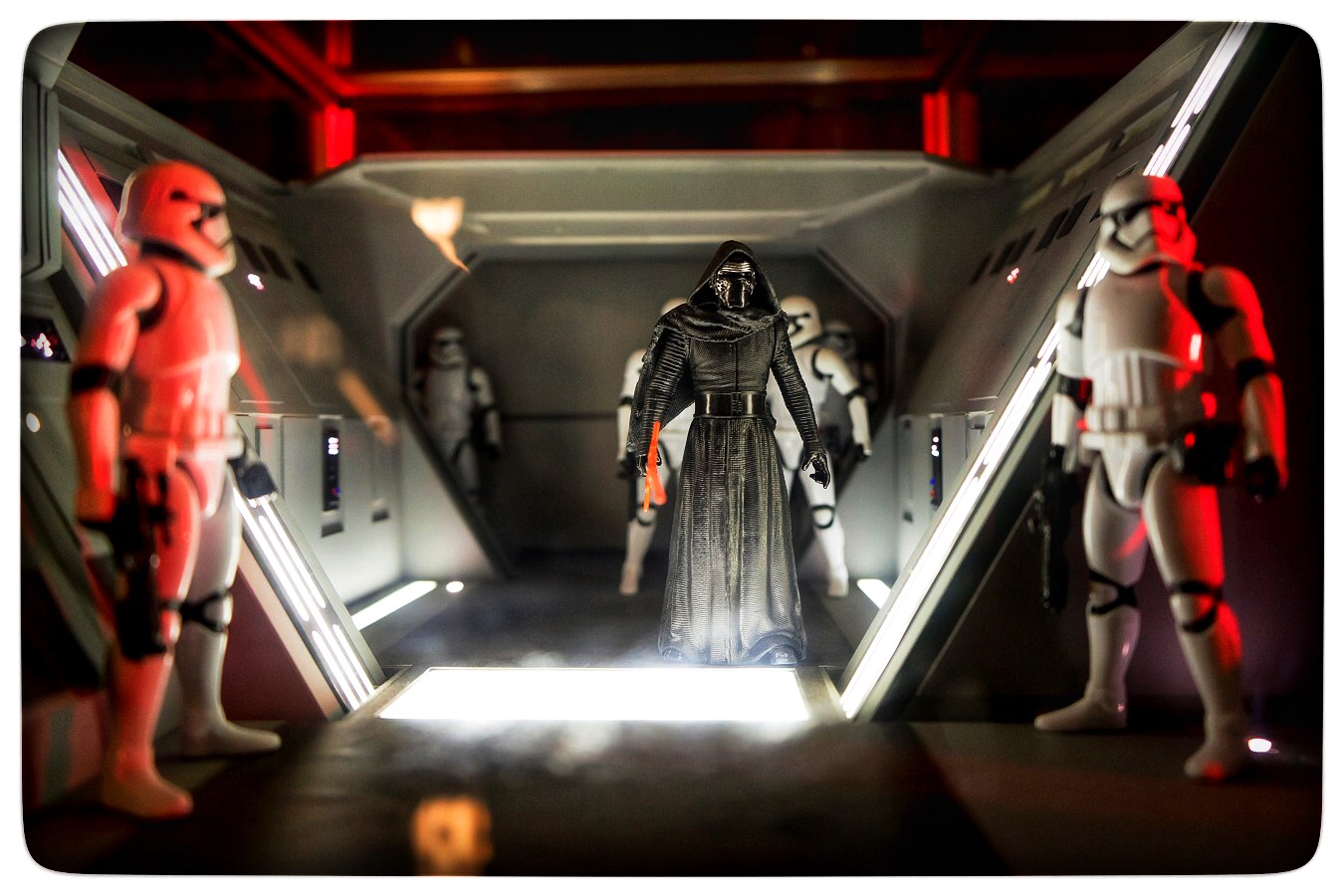 Ob einige der Aufnahmen aus den Trailern zu „Rogue One: A Star Wars Story“ nur Promo-Shots waren oder während der vieldiskutierten Post-Produktion des Spin-offs gestrichen wurden, werden wir wohl nie erfahren. Fest steht: Im fertigen Film fehlen sie. Leider ist die Szene, in der die Stormtrooper auf Scarif patrouillieren auch komplett entfallen. Sie diente uns im Vorfeld zum Filmstart zu "Rogue One" als Vorlage für dieses Diorama.