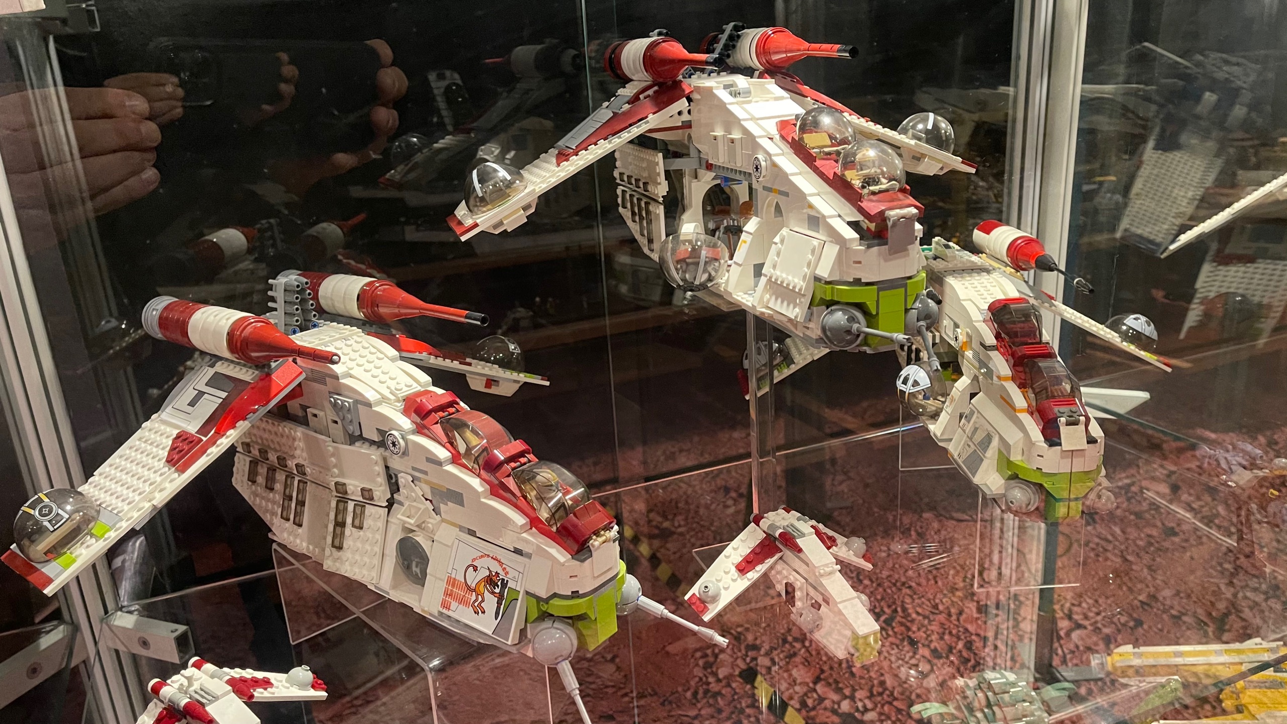 Dieses Modell ist komplett aus Metall und wiegt über 150 kg. Der Querschnitt zeigt eindrucksvoll viele Details vom Millennium Falcon. Hier sieht man unter anderem auch erstmals die Schmuggelkammern, in denen sich Han Solo mit seinen Freunden vor den Stormtroopern im Todesstern verstecken konnte.