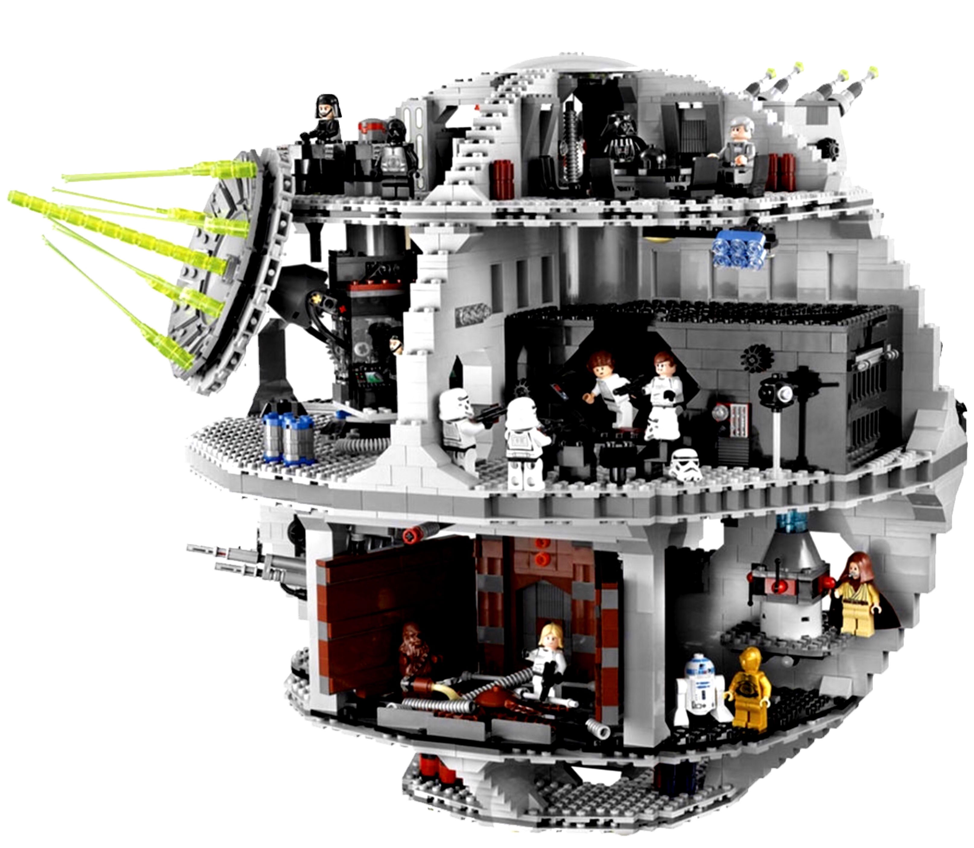 Der Todesstern besteht aus vier Ebenen. Auf der obersten befinden sich eine große Laserkanone und deren Steuerung. Von hier gelangt man in den Droiden-Wartungsraum, daneben befinden sich zwei beweglich angebrachte Lasergeschütze. Auf der Ebene darunter ist der Superlaser installiert, der ganze Planeten vernichten kann, sowie der Hangar für den TIE Fighter von Darth Vader. Eine Ebene tiefer befindet sich ein drehbares Geschütz, mit dem sich kleine Geschosse aus Gummi abfeuern lassen. Die unterste Ebene ist ein wenig klein geraten und dient als Frachtraum. Die mitgelieferte Bauanleitung besteht aus Piktogrammen und Bildern. Natürlich braucht eine solche mächtige Waffe auch eine Mannschaft. Neben vielen Stormtroopern und Droiden gibt es auch Minifiguren der Helden wie Luke Skywalker, Han Solo, Prinzessin Leia, Obi-Wan Kenobi, Darth Vader, dem Imperator und vielen anderen