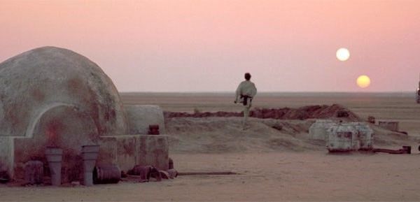 Namensgebend für Tatooine war der Ort "Tataouine" in Tunesien. George Lucas drehte mehrere Tatooine-Szenen in verschiedenen tunesischen Orten, weswegen diese bis heute bei Touristen sehr beliebt sind. Teilweise kann man die Gebäude aus den Filmen auch noch besichtigen. Gerüchten zufolge existiert auch die Eingangstür zur Cantina noch, allerdings am Eingang eines Hühnerstalls.