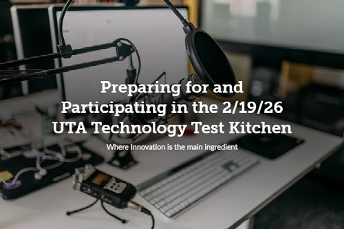 We are thrilled that you will be joining us on February 19, 2026 for a new, collaborative adventure--the UTA Technology Test Kitchen in the lobby of Trinity Hall/Trinity 112, or Trinity 105, at your designated time between 1:00-2:30 pm.