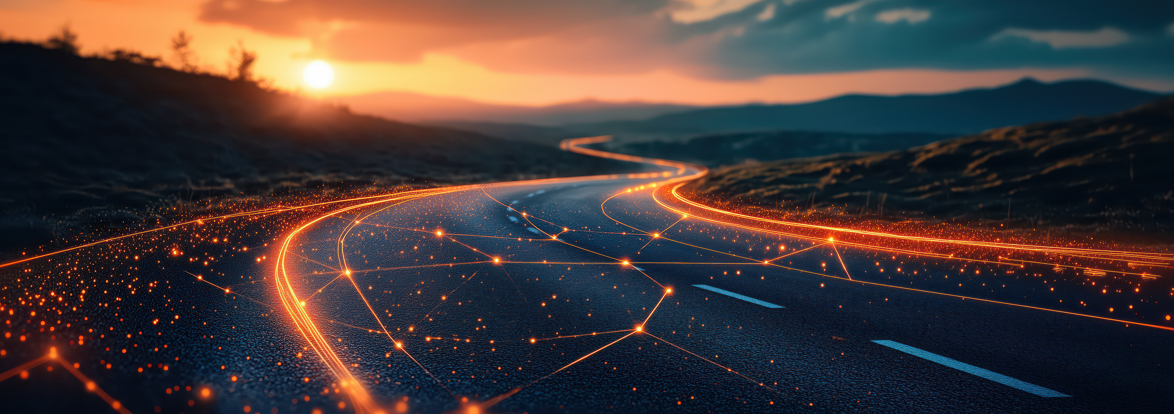 Created with an image by Nathasa - "Logistic road with hologram data online network background."
