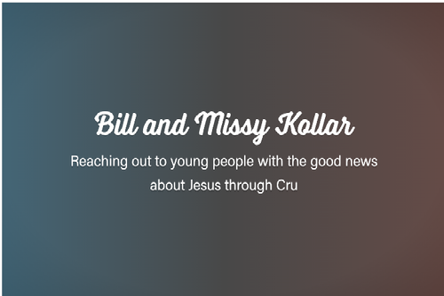 Bill and Missy Kollar Reaching out to young people with the good news about Jesus through Cru