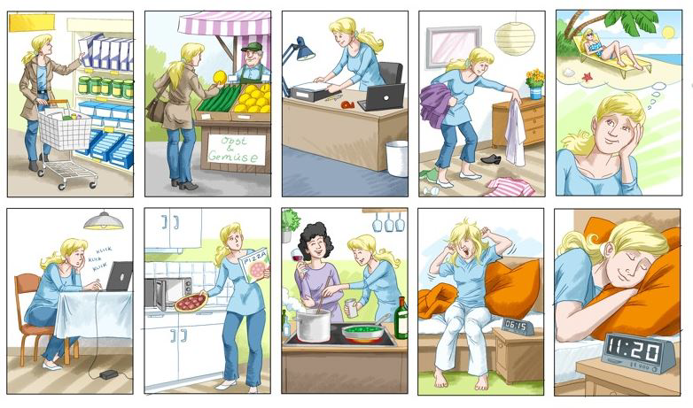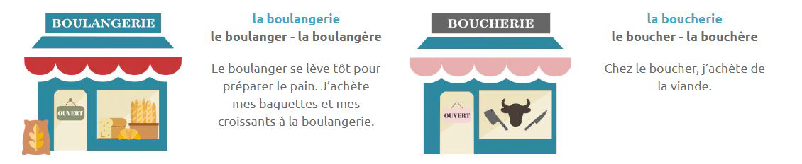 Ecoute et mémorise un maximum de magasins et produits. Fais ensuite les différents exercices !