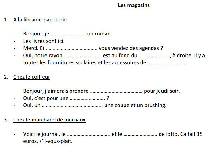 2. Comprendre un document audio : les magasins (librairie, coiffeur, marchand de journaux)