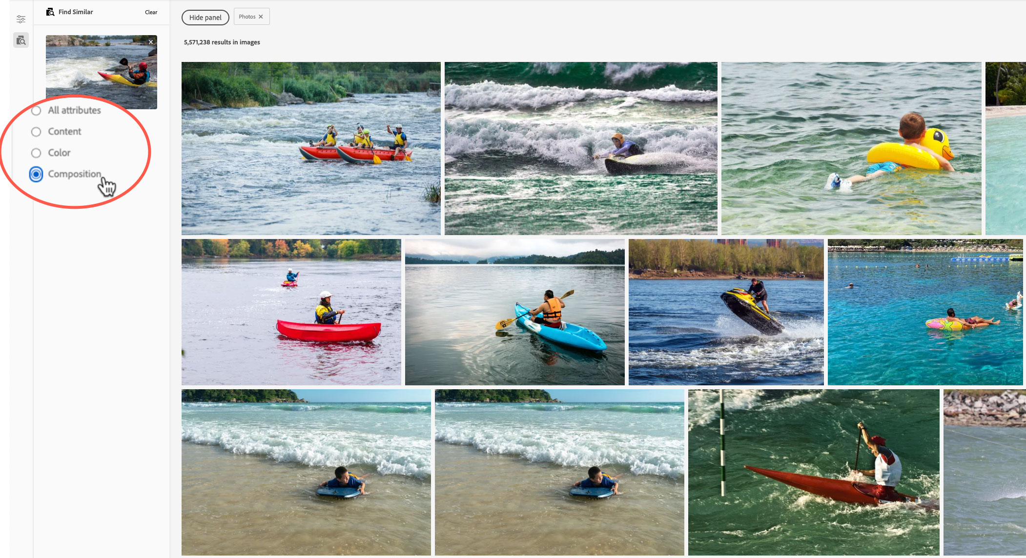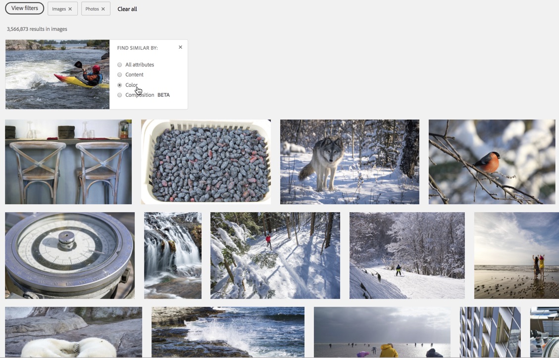 If you have narrowed down your results with keywords and other filters, you may find yourself on the right track, but still need to focus your search results further. Let Adobe Sensei help you with our Find Similar options.