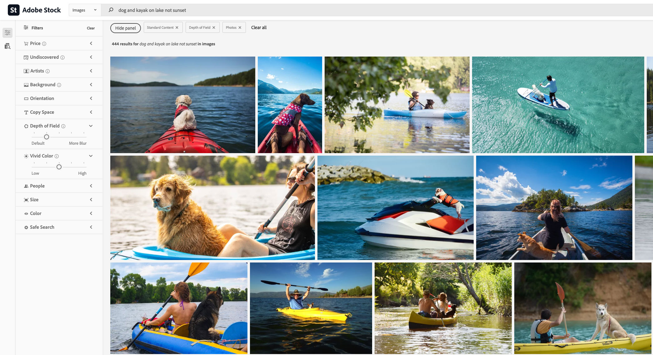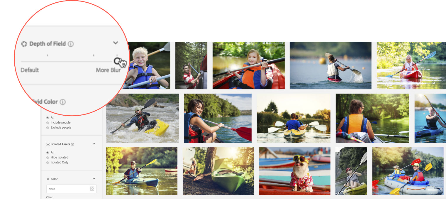 Using a sliding scale, the Depth of Field aesthetic filter allows you to narrow your search images with sharp focus extended throughout the image (think - landscape photo) or images with one sharply focused subject with blurred foreground and/or background (think - fashion photography or close up photography).