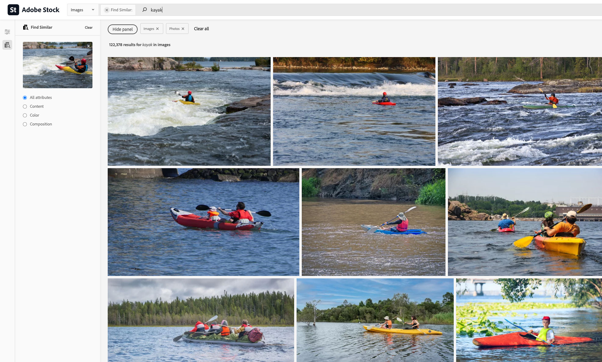 Search for images that are similar in look and feel to those you’ve already selected by clicking the Find Similar icon (camera) on the image, or by clicking on an image for a larger preview.