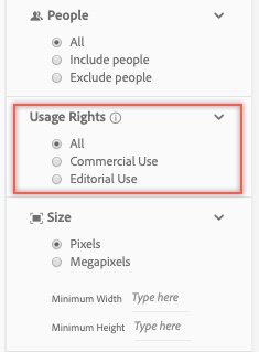 By default, this type of asset is displayed in any general content search, but you can filter out those images using the Usage Rights