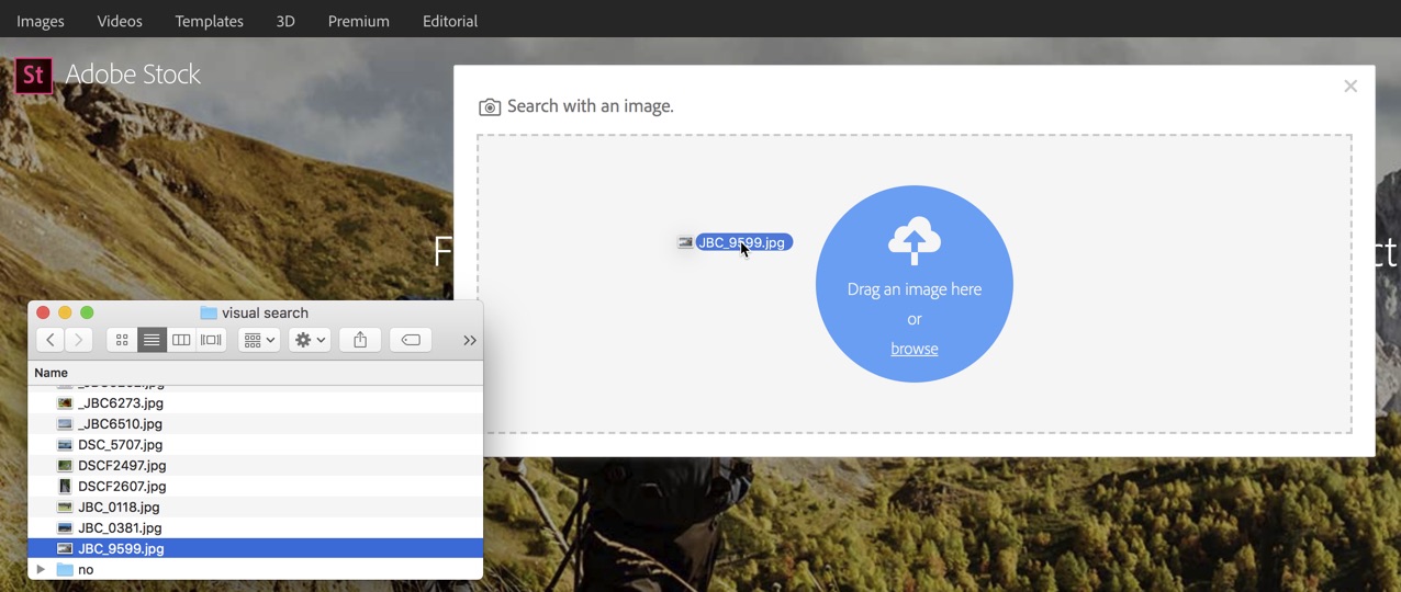 - Click and drag an image from existing Adobe Stock search results.