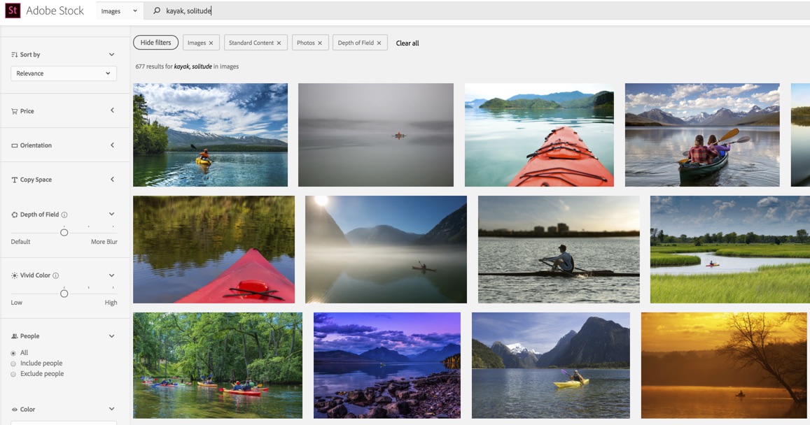 Adobe Stock is continually analyzing assets to understand how they relate to trends, topics, and themes. Sometimes, what you're looking for is an asset that embodies a mood, emotion or concept, rather than a straight-forward description like, "man standing on mountain". If that's the case, try using conceptual keywords in your search, like happy, alone, thoughtful, love....