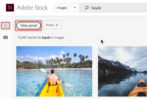 By default, the Filter panel on the left side of the Stock website is hidden. After your first search, click on the View Panel button or the Filters icon to expand the panel. A lot of your options for finding the right image quickly are in this panel. I'll point out many of these options in this article.