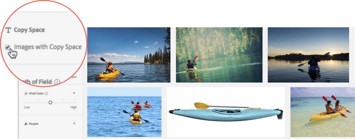 Using the Copy Space content filter, you can further alter your search by specifying whether the assets you need require room for other design elements, such as text, logos or or other images.