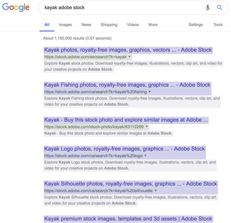 Pro-Tip #2: Did you know, you can even start your search on Google? Simply type in a keyword and include "adobe stock" to focus your results on content from the Adobe Stock web site.