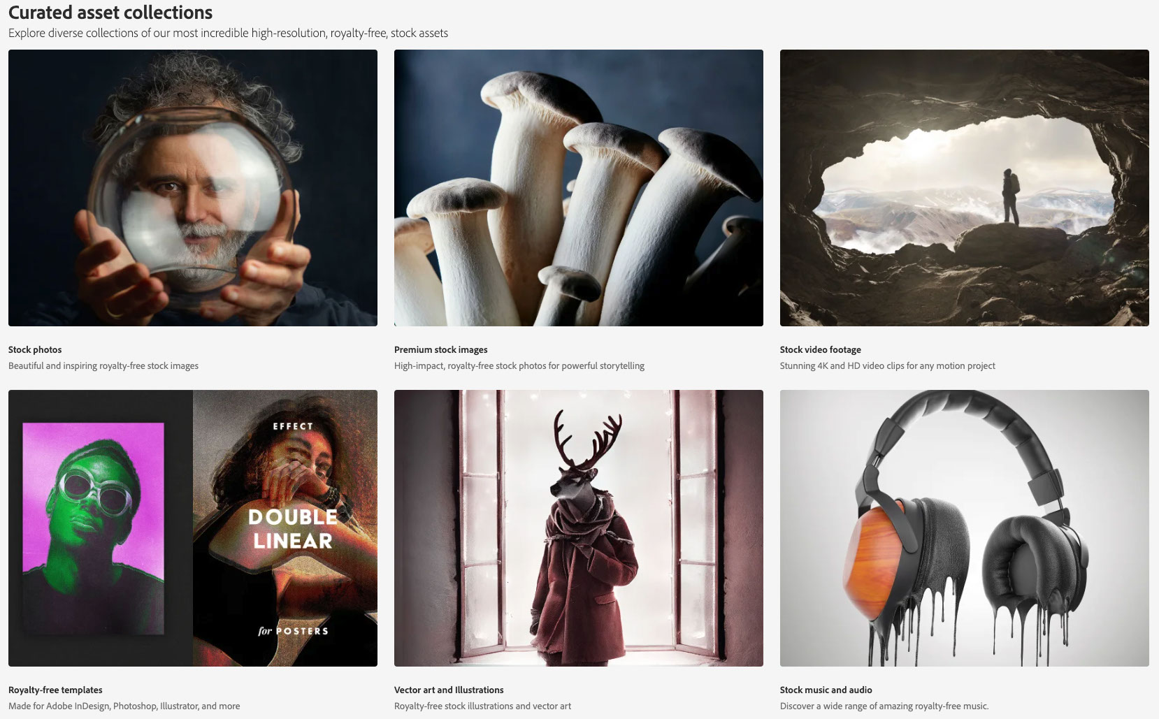 Not sure where to start? You'll see Curated Collections on the main page of every asset category: