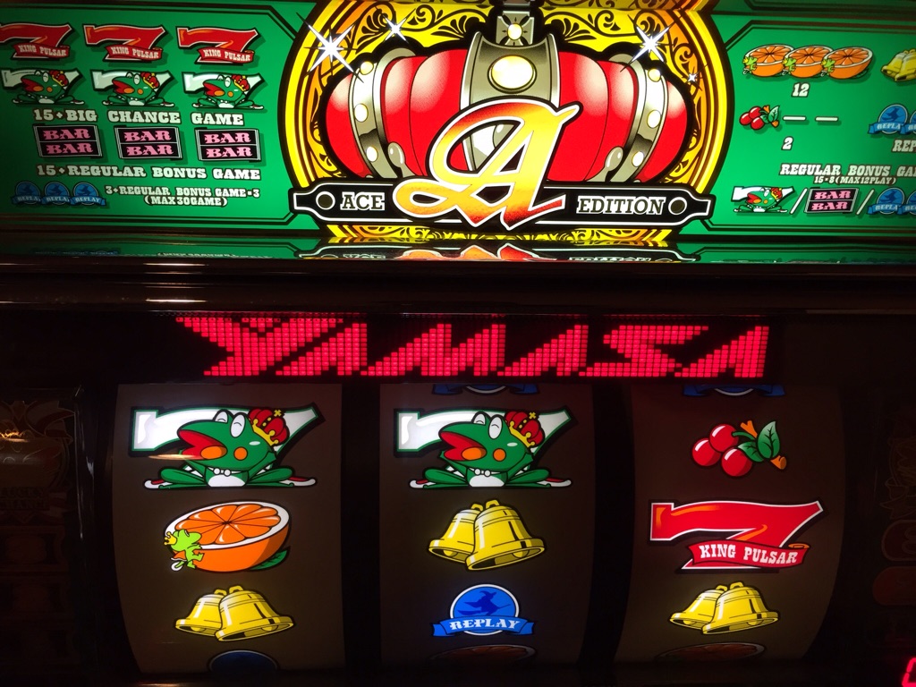 King Pulsar Pachislo Machine is a Japanese skill-stop slot machine. It is similar to traditional (auto-stop) slot machines, except with Pachislo, the player uses three buttons to stop the reels, which requires some skill. The machine accepts tokens and features an LCD screen, music and extra reels, which enhances the standard reel play. The spin knob on a Pachislo machine is located on the front of the cabinet – instead of a handle on the side on a traditional slot machine. With a little luck you just might hit the Big Bonus Round!