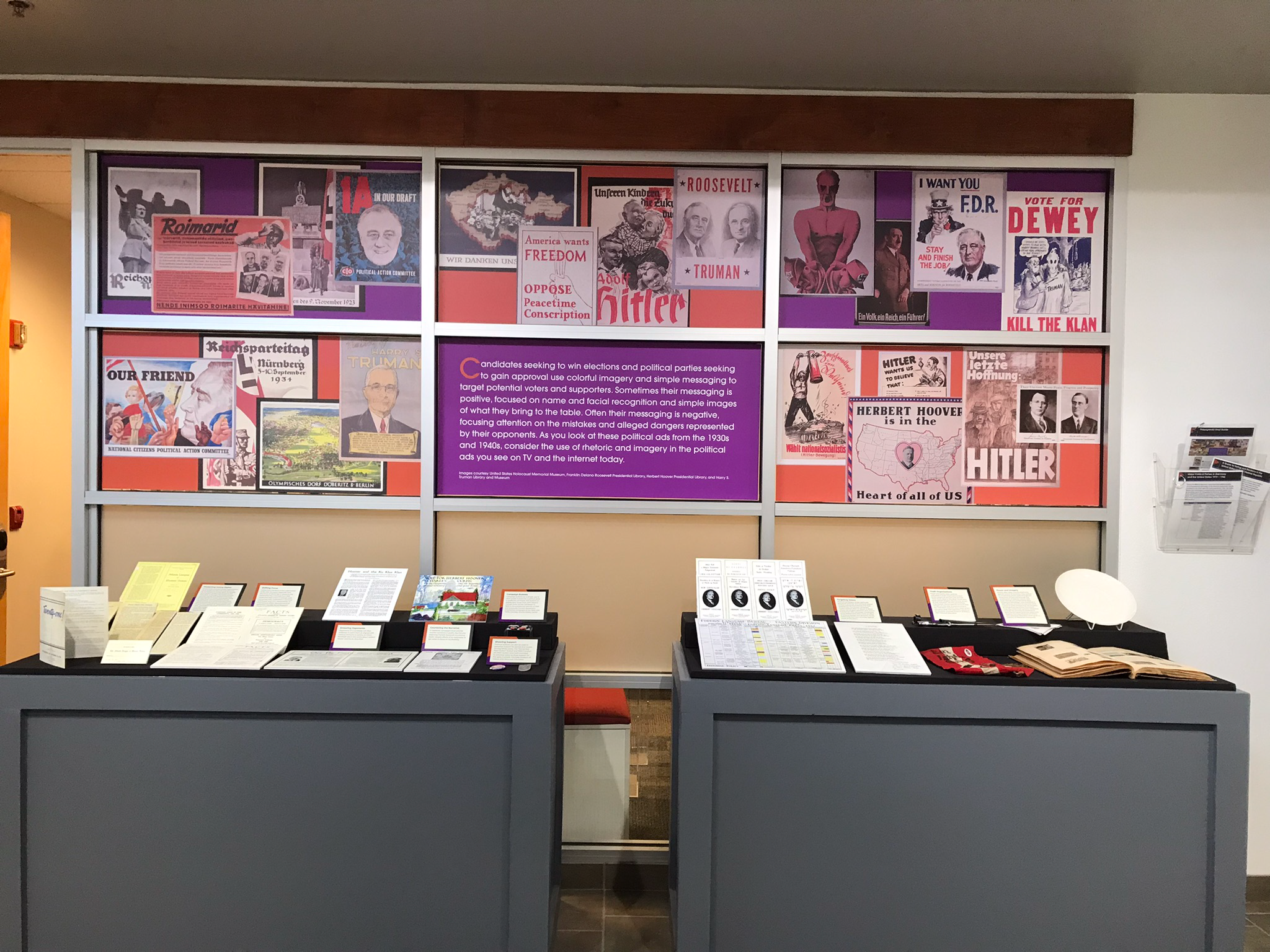 Candidates seeking to win elections and political parties seeking to gain approval use colorful imagery and simple messaging to target potential voters and supporters. Sometimes their messaging is positive, focused on name and facial recognition and simple images of what they bring to the table. Often their messaging is negative, focusing attention on the mistakes and alleged dangers represented by their opponents. As you look at these political ads from the 1930s and 1940s, consider the use of rhetoric and imagery in the political ads you see on TV and the internet today. Images courtesy United States Holocaust Memorial Museum, Franklin Delano Roosevelt Presidential Library, Herbert Hoover Presidential Library, and Harry S. Truman Library and Museum.