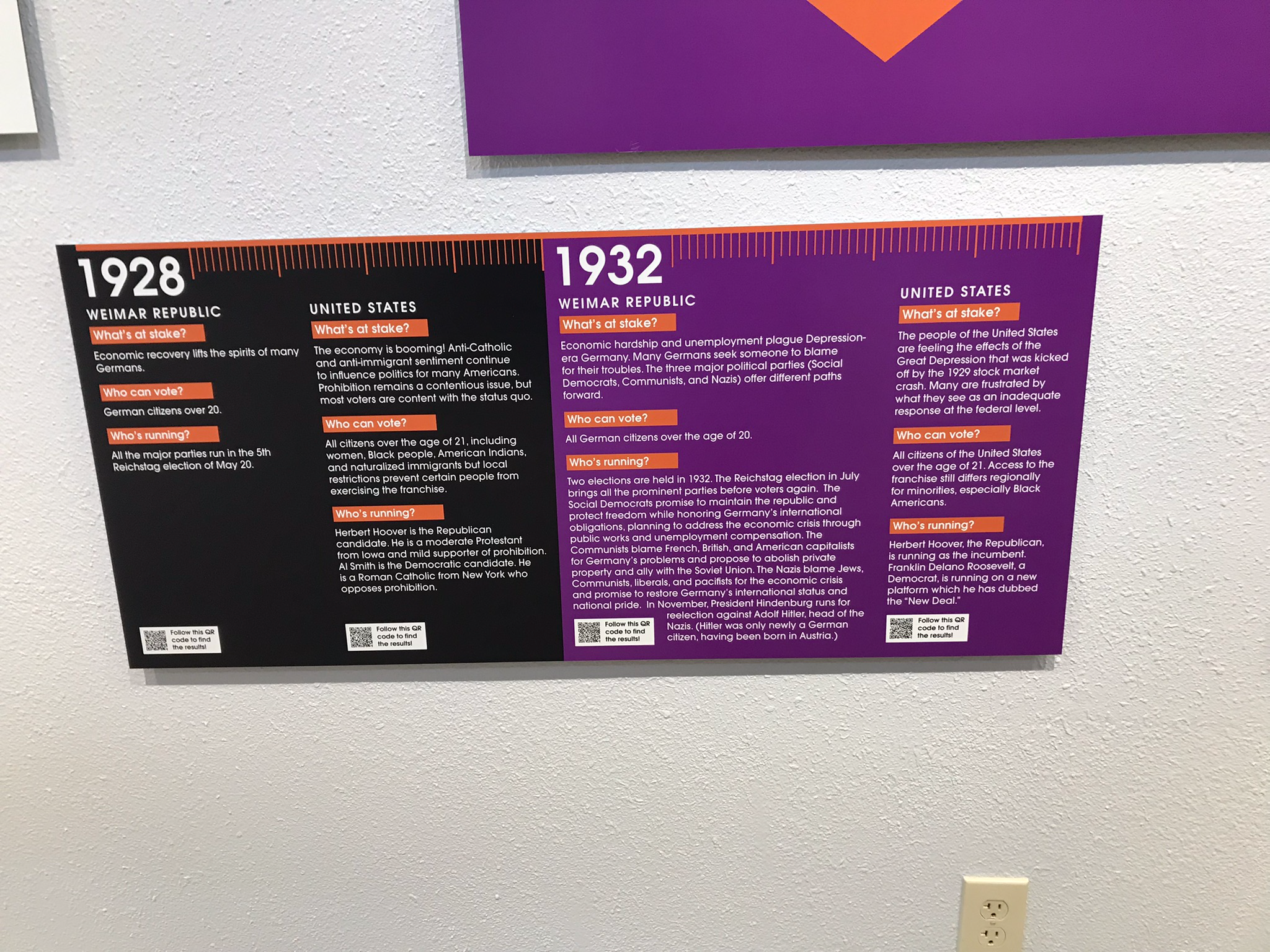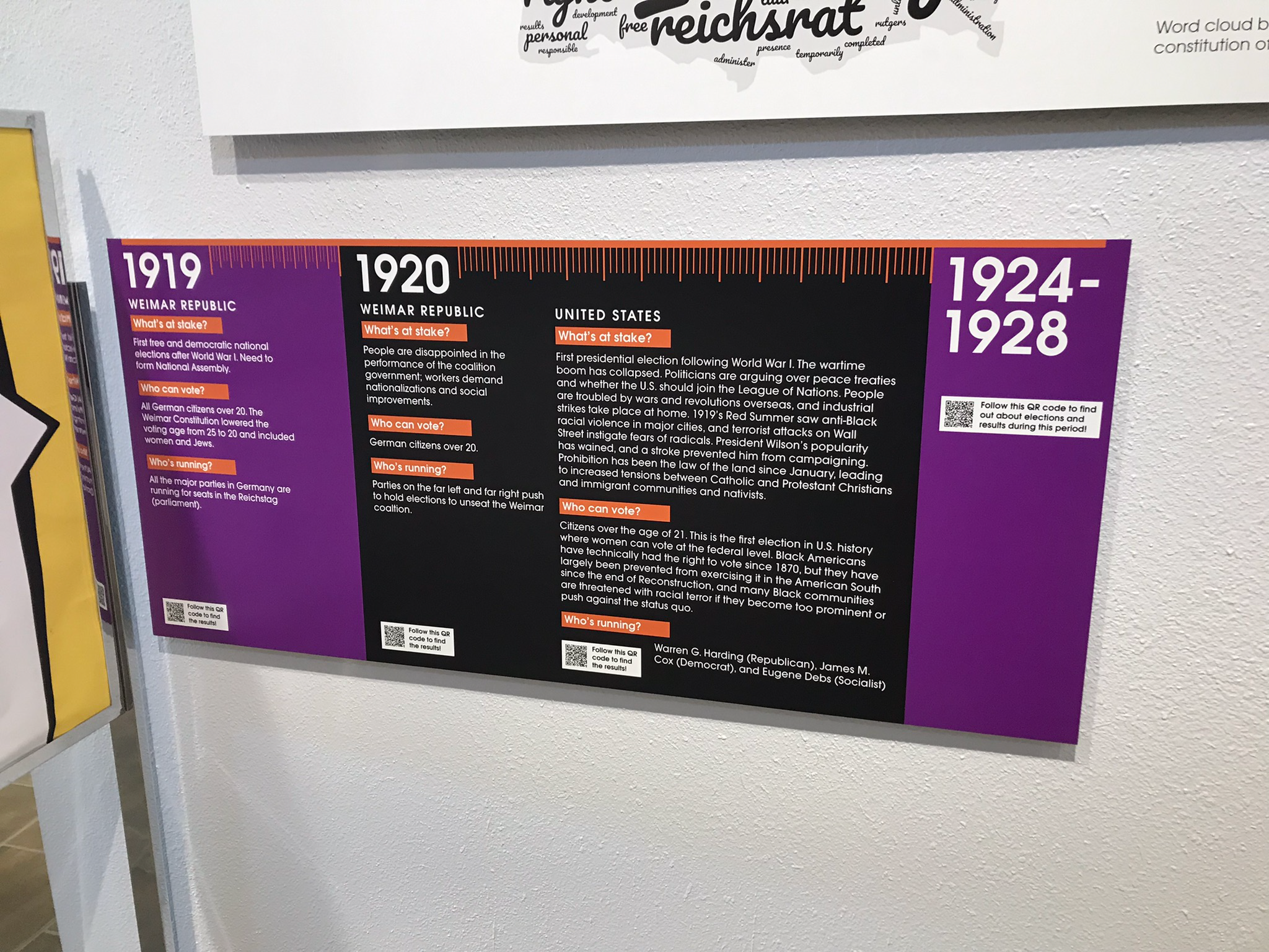 In this digital module, based on the exhibition, we invite you to examine what was at stake in each important election in the United States and Germany in the 1920s, 30s, and 40s. We invite you to meet the candidates and discover the results. All the while, we ask you to consider who could vote, who was prevented from exercising the franchise, and how those seeking power attempted to influence the electorate.