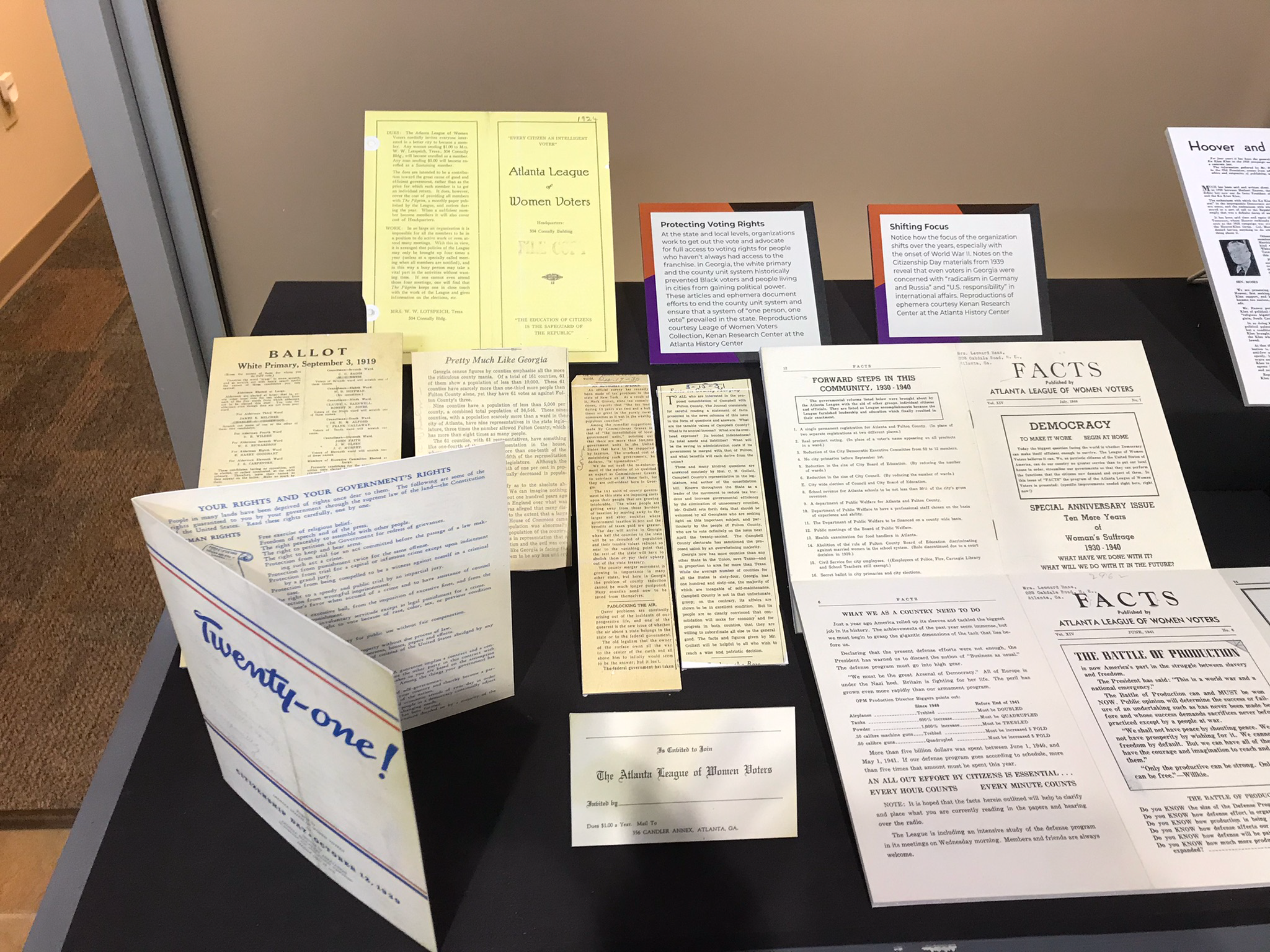 At the state and local levels, organizations work to get out the vote and advocate for full access to voting rights for people who haven’t always had access to the franchise. In Georgia, the white primary and the county unit system historically prevented Black voters and people living in cities from gaining political power. These articles and ephemera document efforts to end the county unit system and ensure that a system of “one person, one vote” prevailed in the state. Reproductions courtesy League of Women Voters Collection, Kenan Research Center at the Atlanta History Center.