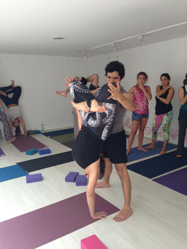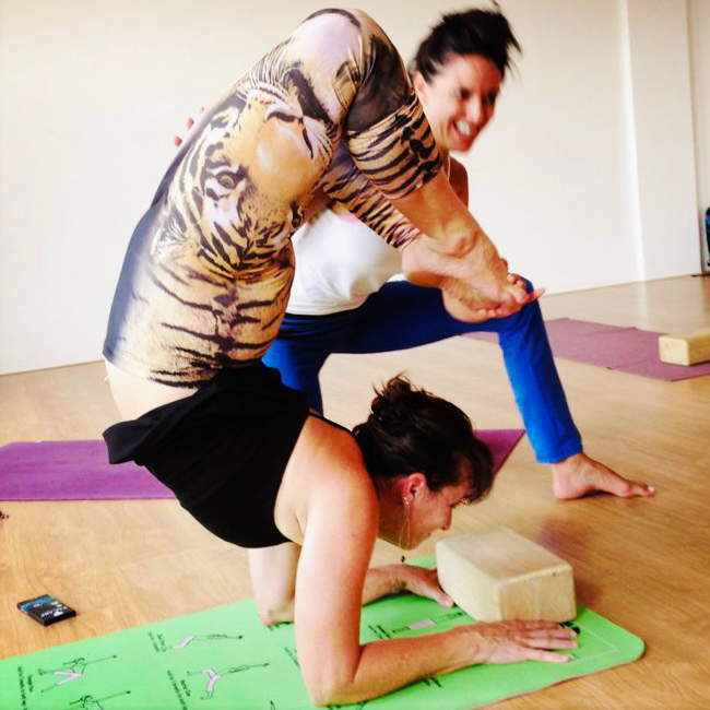 A dynamic yoga practice, with clear principles of alignment, geared to the capacity of the students who are present, with demo breaks for questions, personal attention, partner poses, laughing and learning.