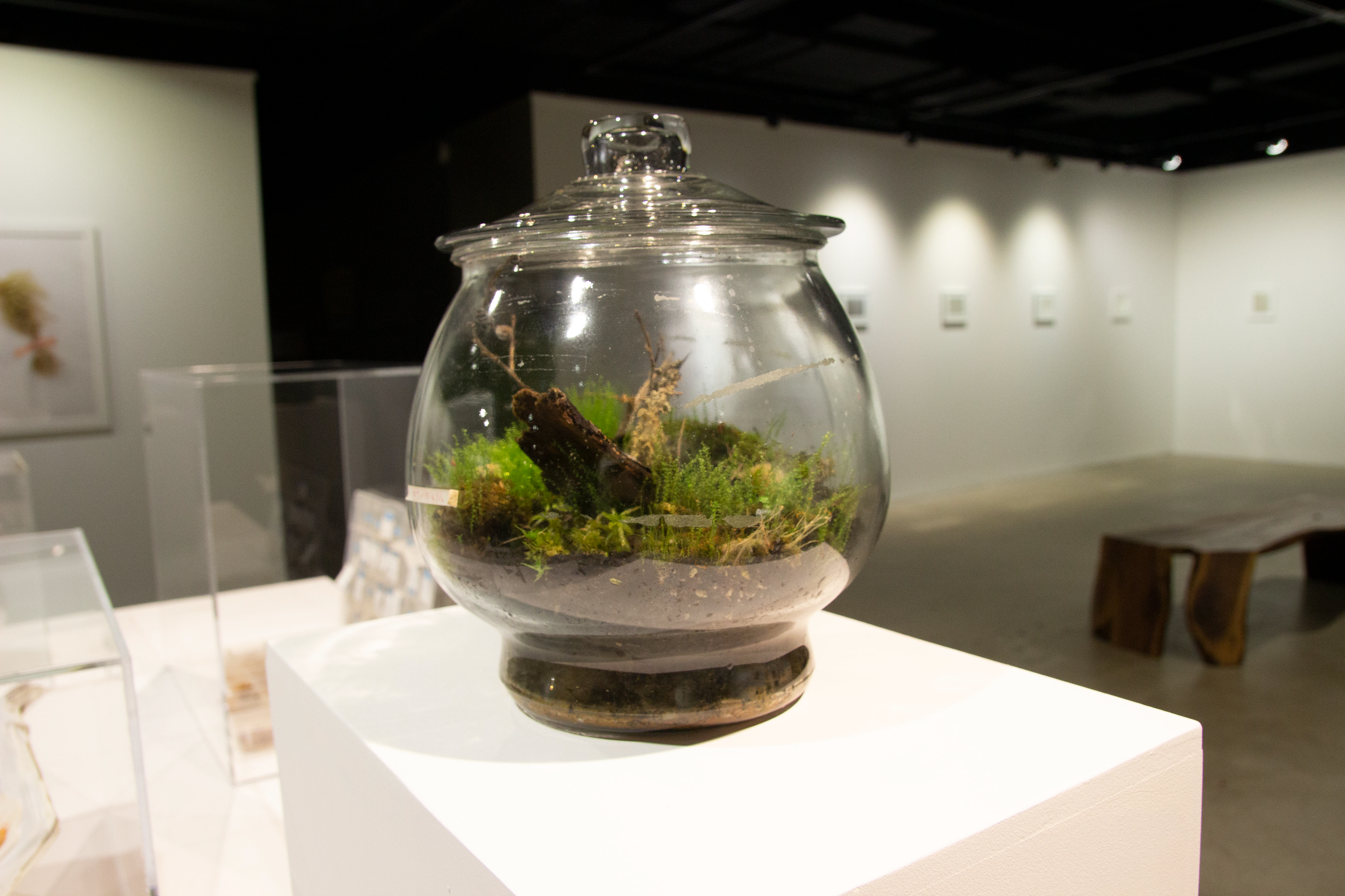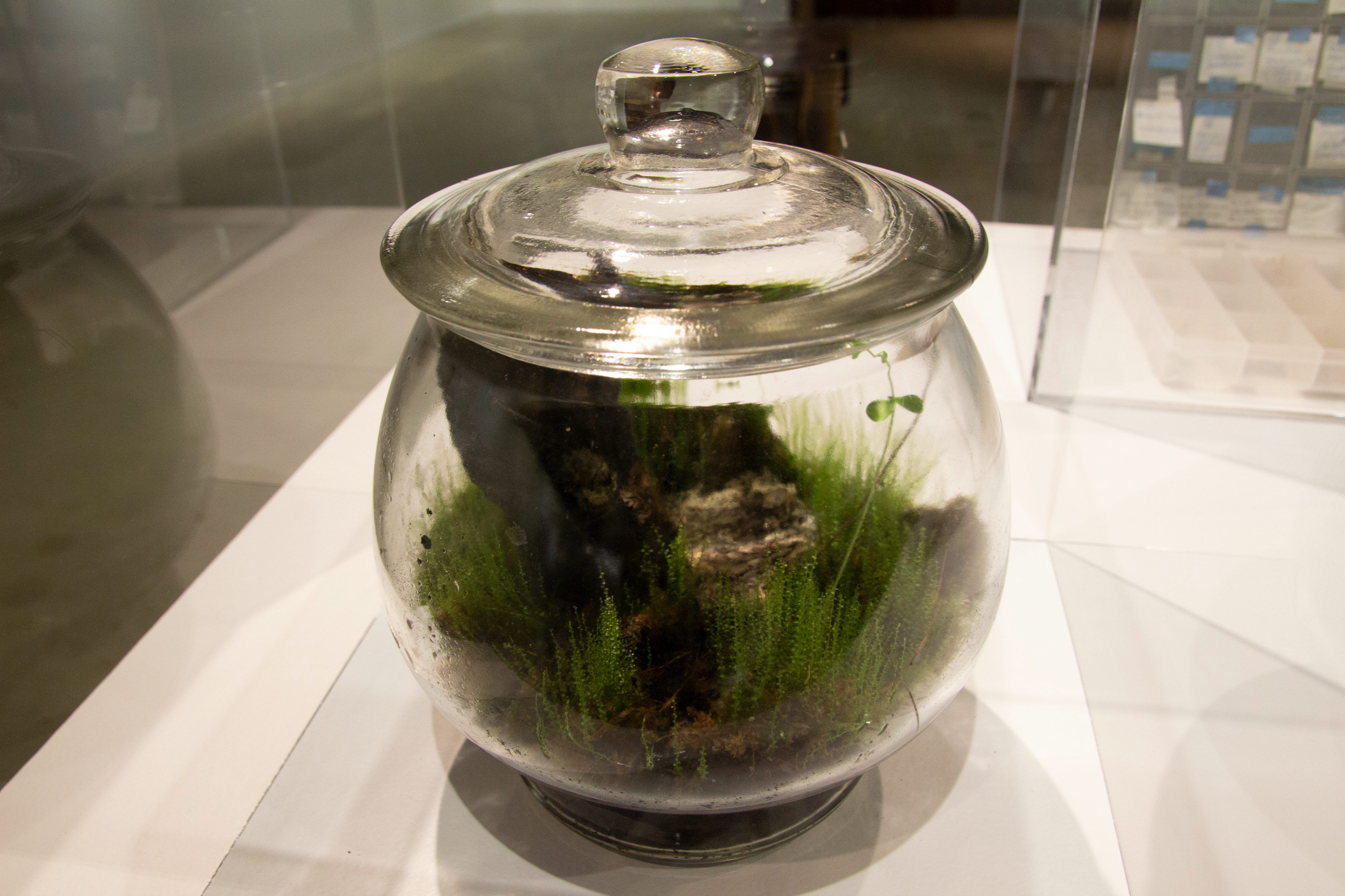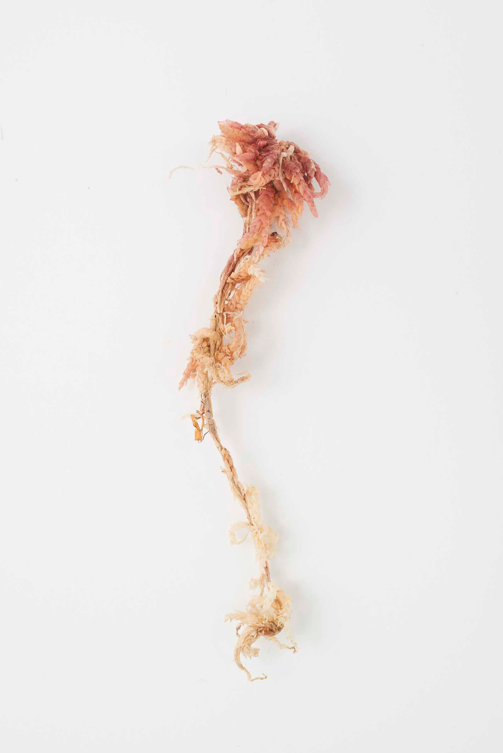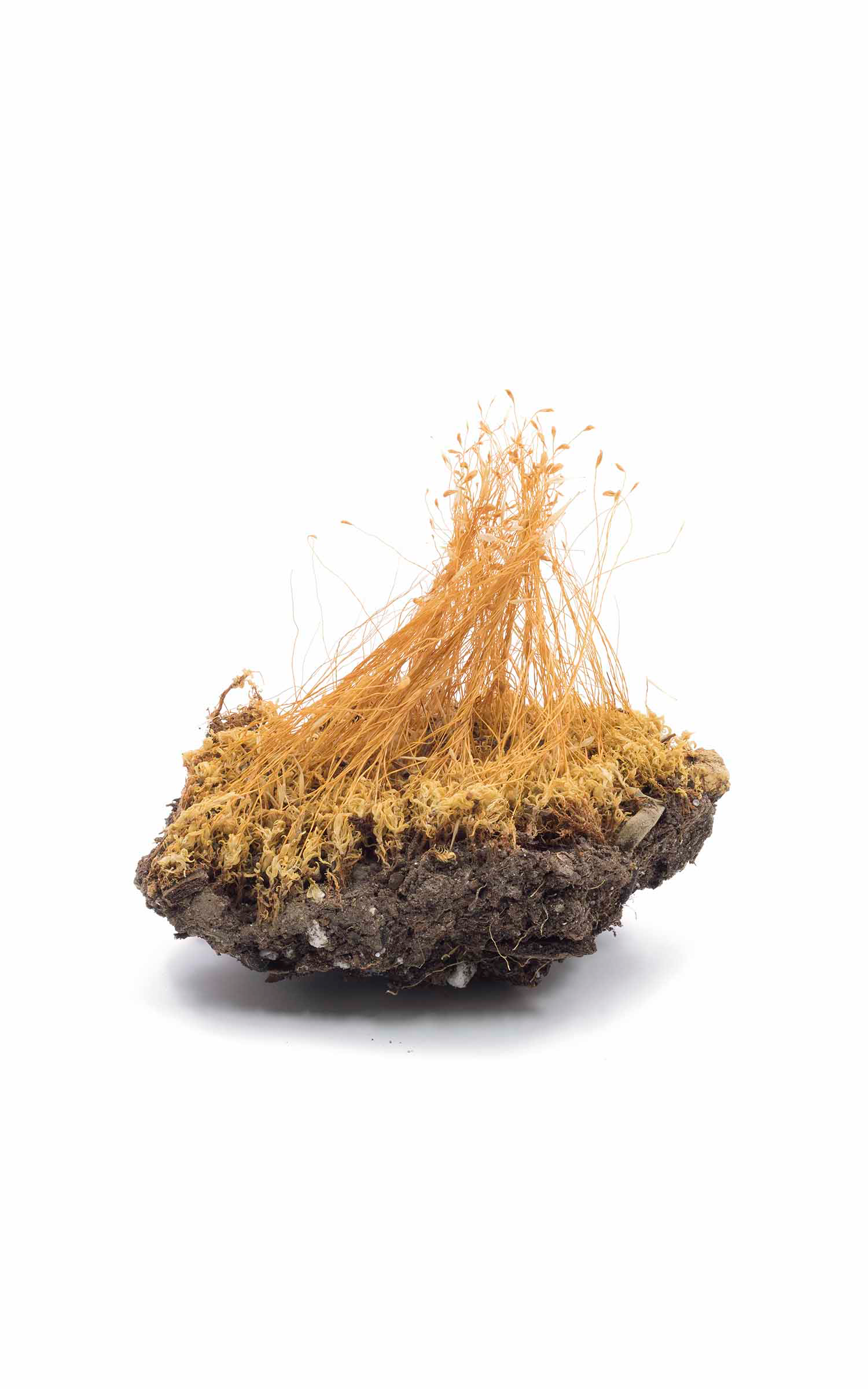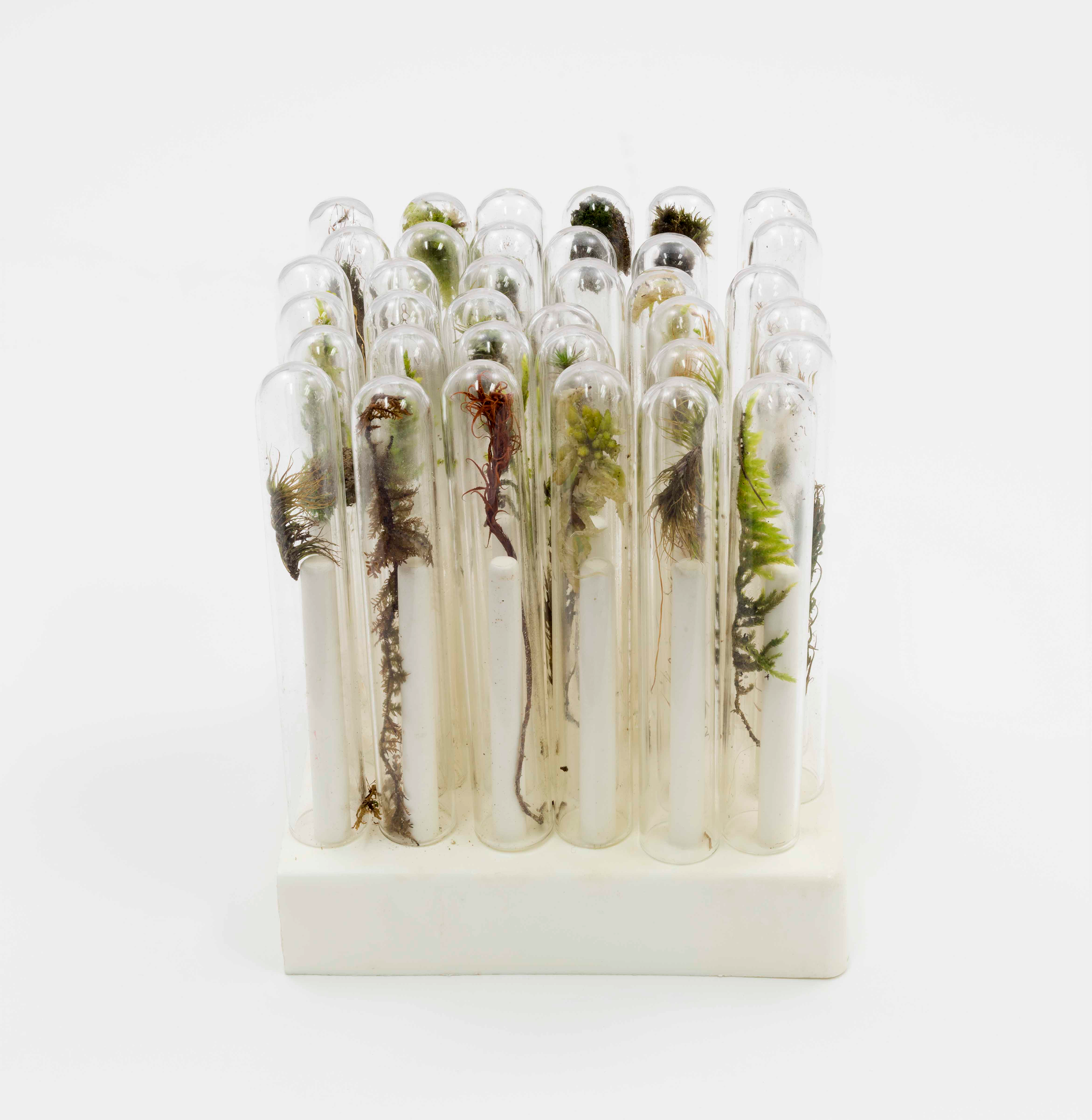 Wilson’s collaboration with botanists has drawn her attention to moss, which functions as an environmental bio-indicator. Mosses are the earliest form of plant life; they thrive in unlikely habitats and are ubiquitous, though largely invisible, even in the densest urban centers. Mosses survive on as little as dew and are able to dry out, die, and then resurrect with water. Wilson’s study of moss is about looking closely and paying attention to what is small, omnipresent, and overlooked, while drawing parallels to the most fundamental aspects of human presence.