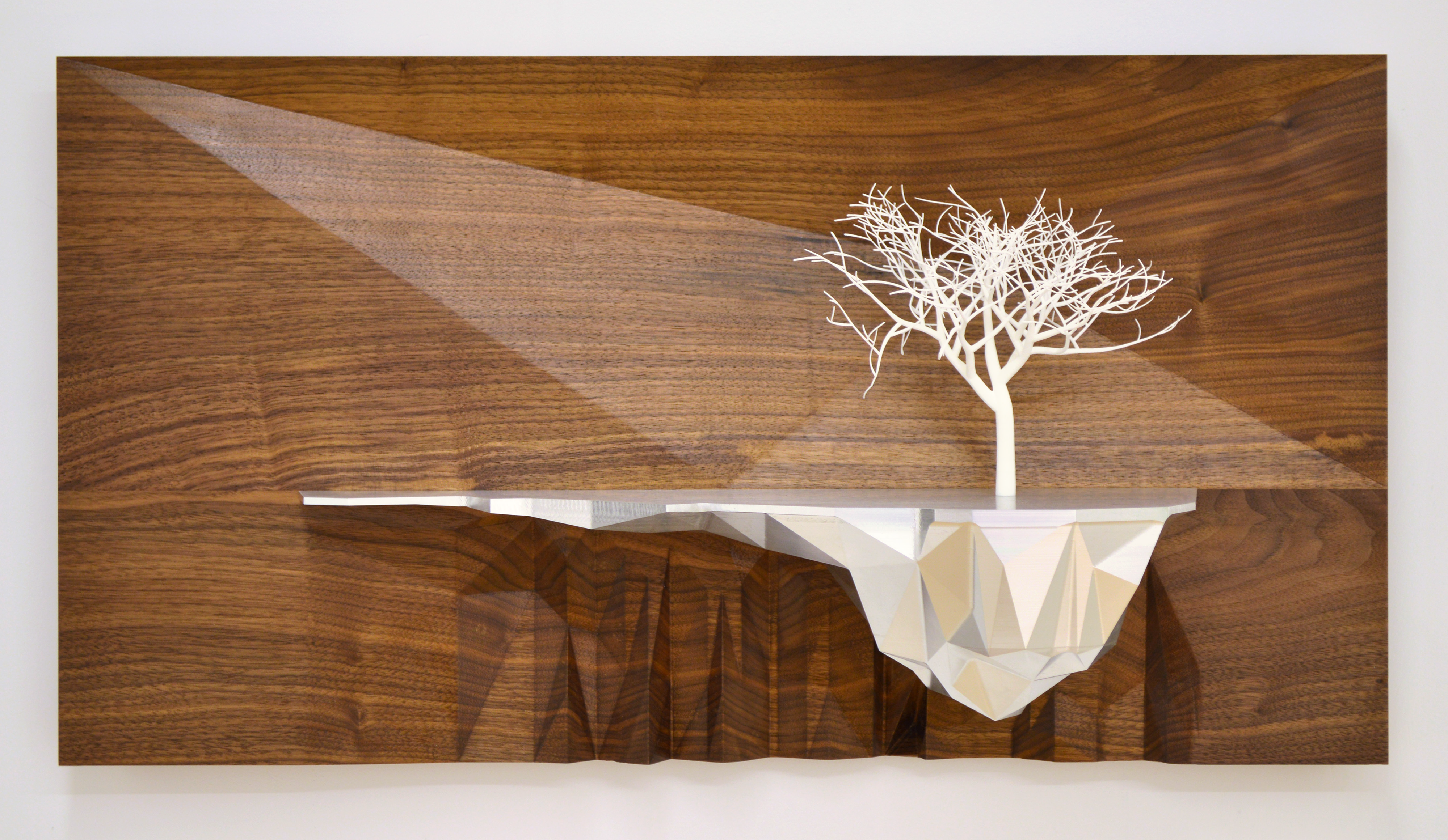 1. What personal experiences informed your desire to create art related to the environment? Any form of thoughtful living, during this critical moment of anthropogenic climate change, requires that we all give consideration to the environment. My practice focuses on the social and political implications of emerging technologies. Today there are many technologies, from molecular-level control of genetic code to planetary scale of climate engineering that are reshaping our understanding of nature and our relation to it. The series shown in this exhibition is a parallel exploration of work I have been doing in the biology lab working with genetic engineering and with bioprinting cells to create novel materials and form. Working with trees makes sense to me, personally, given my background in woodworking and growing up with a father who harvested timber for a living, with a keen understanding of each tree, the forest, and sustainable environmental practice.