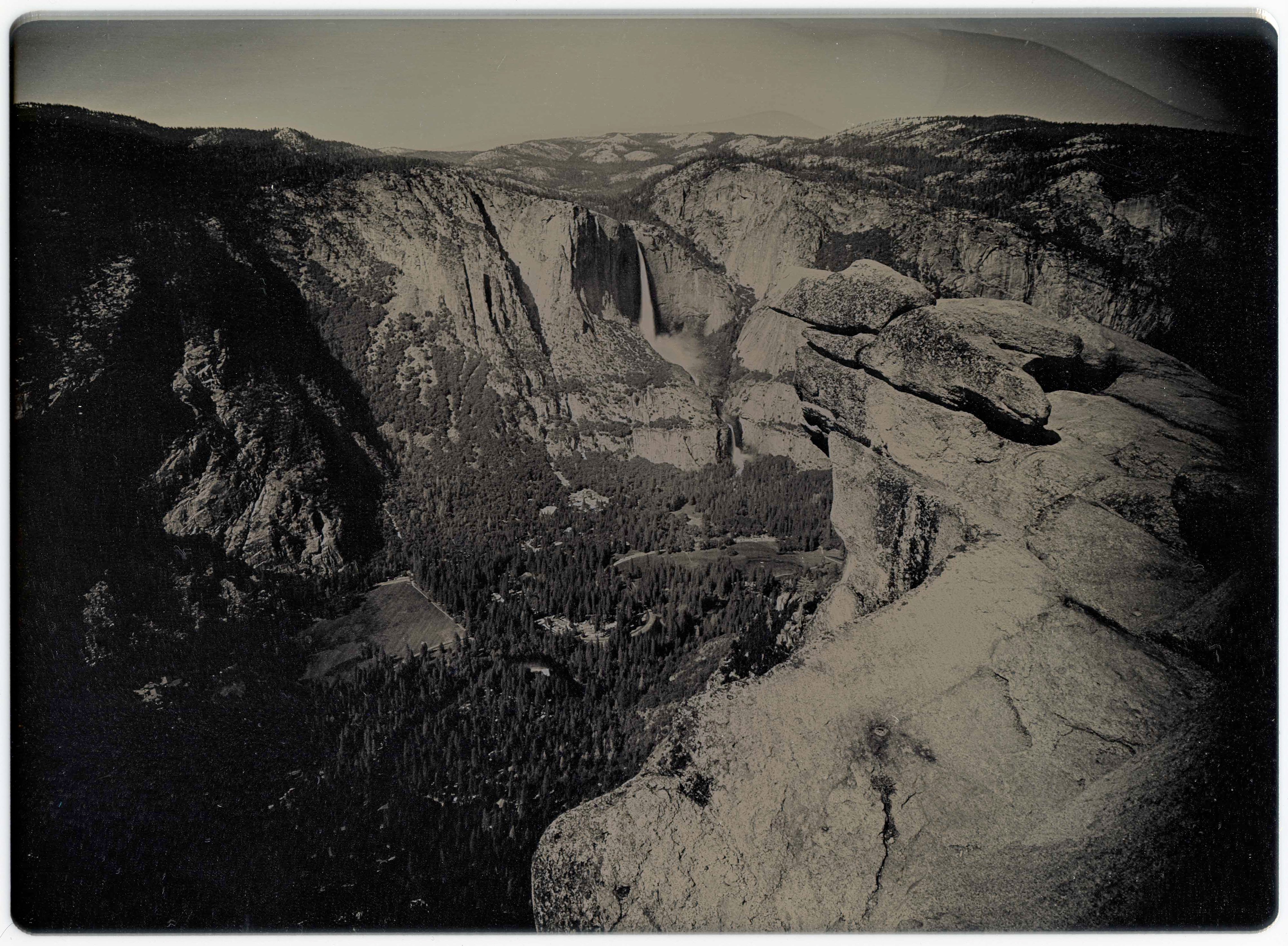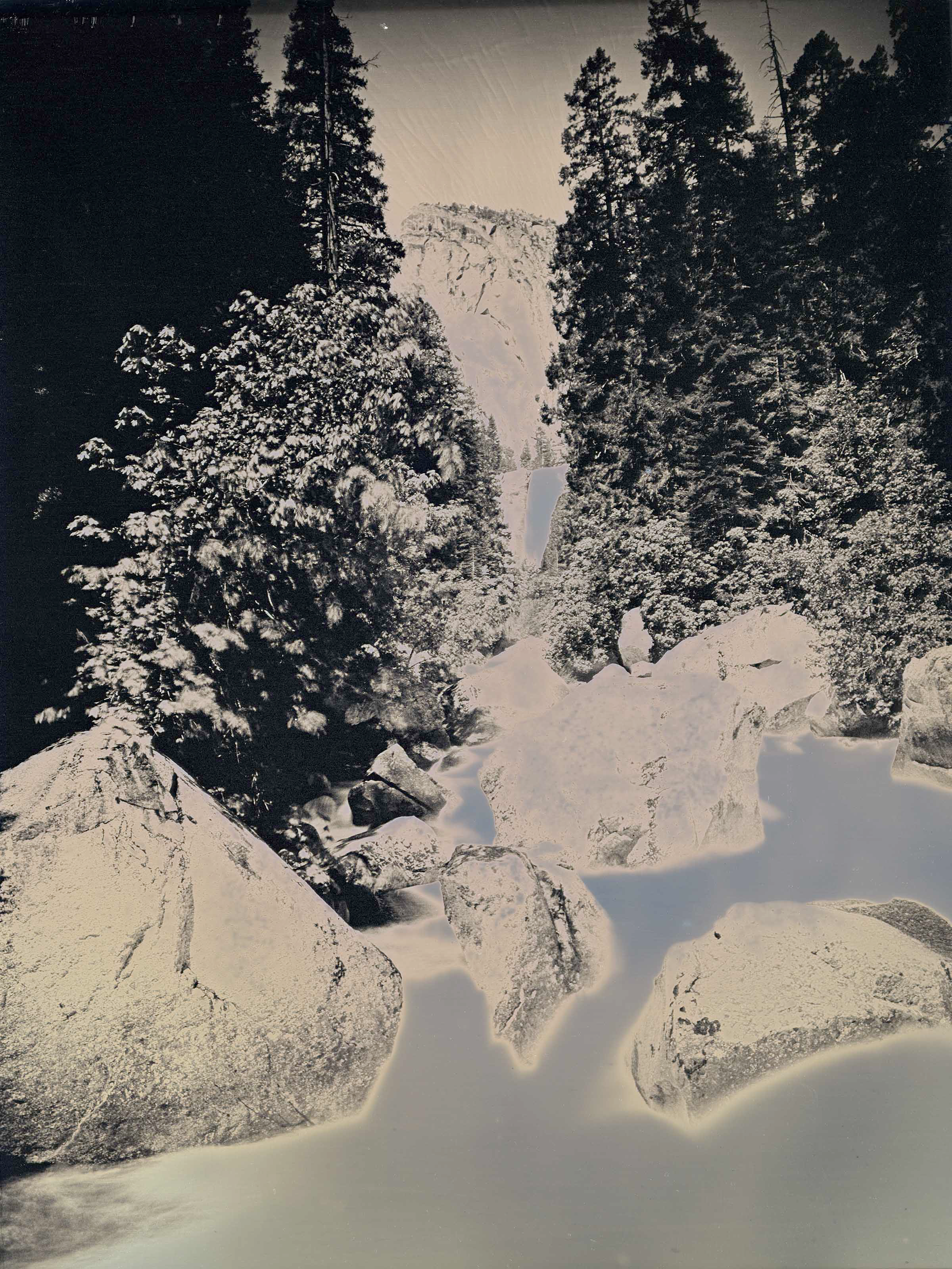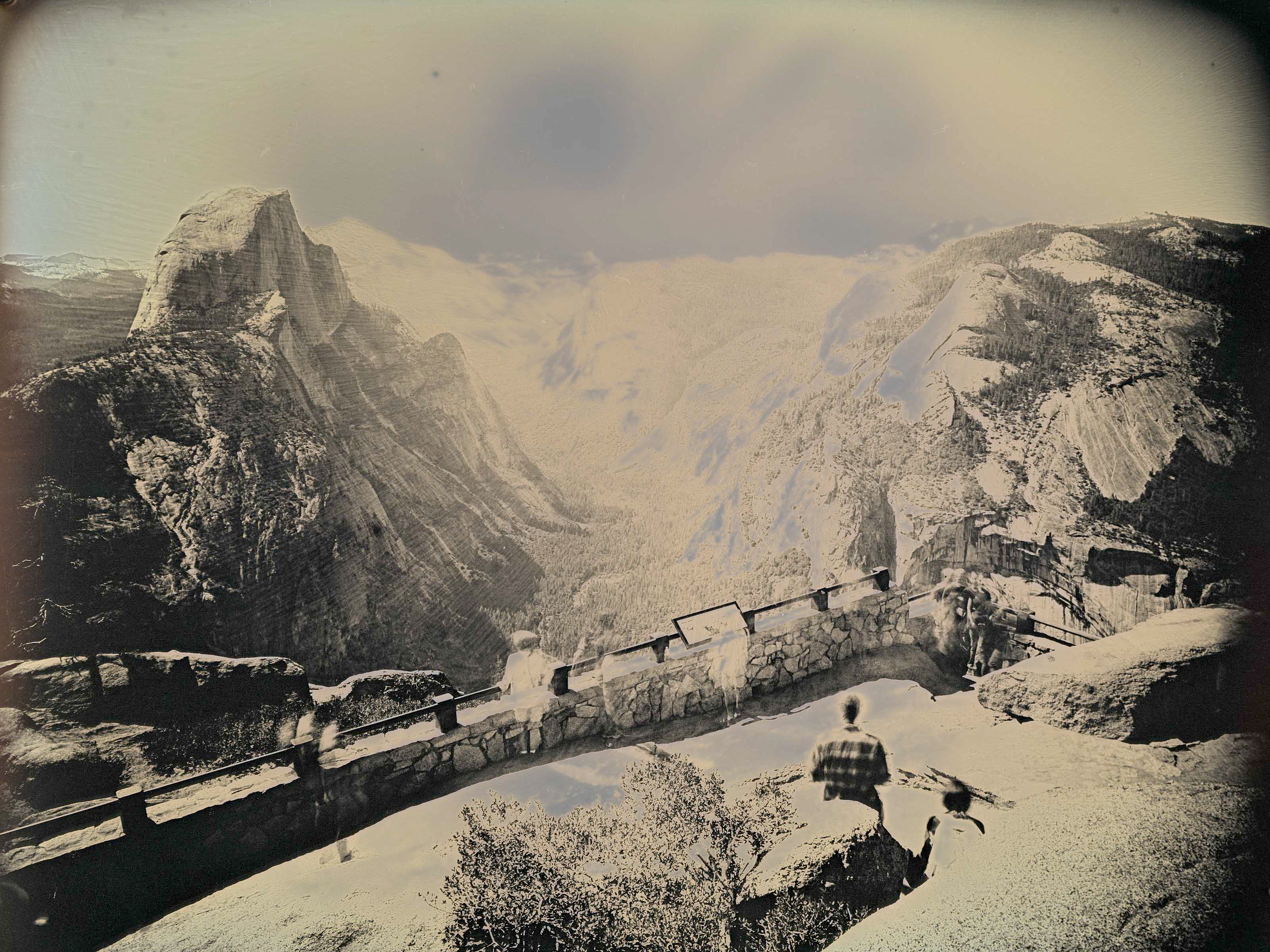 At the same time, I was studying photography as an art student and I was inspired by the work of Ansel Adams and his contemporaries who created stunning black and white photography of national parks, including Yosemite National Park. I, too, wanted to make photographs like that, and I did, but ultimately felt that Adams did it the best, and there was nothing more I could say about the parks. In 2012, I mastered the daguerreotype process and started revisiting many of the same sites to photograph the same terrain as Adams. Because of the uniqueness of the daguerreotype process and mirrored finish of the silver plate, my photographs did not look like Adams. The composition is reversed, and the viewers also acknowledge themselves in the “mirror” image. In the 19th century, the daguerreotype was known as a “mirror with a memory.”
