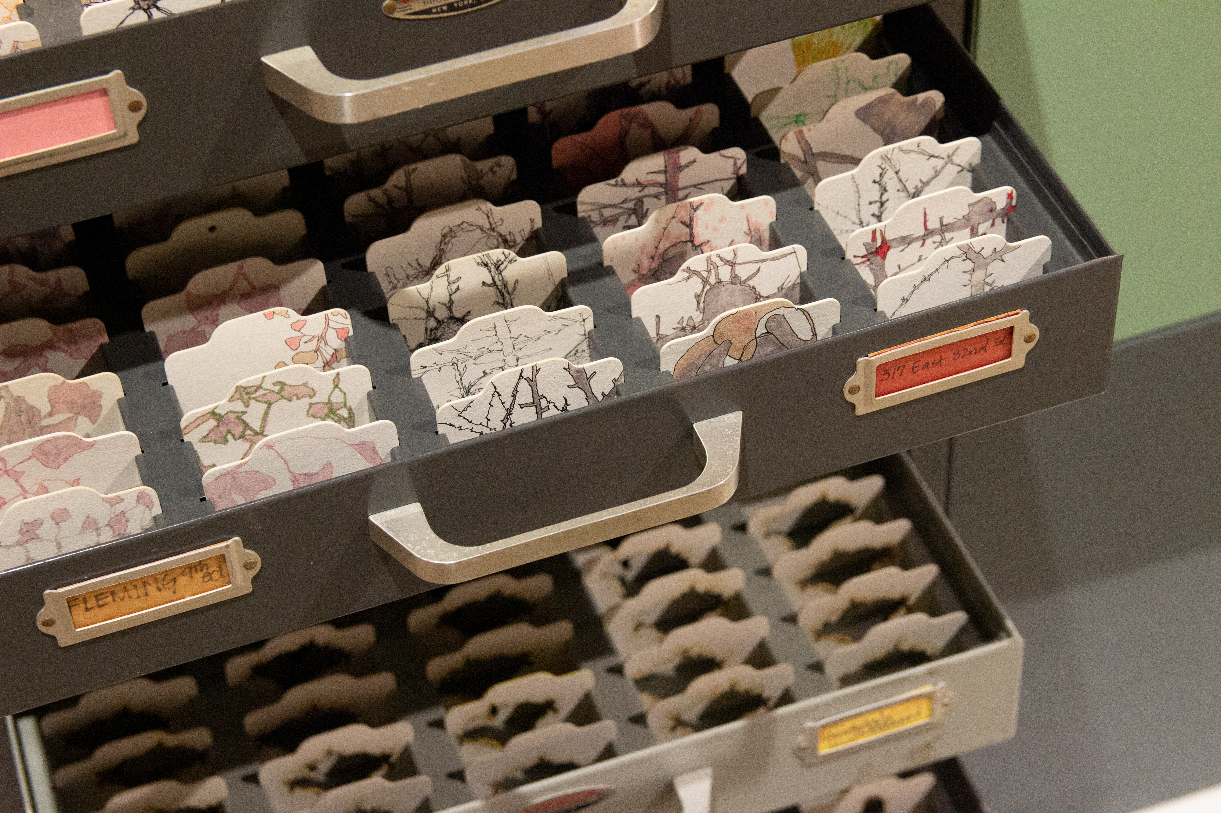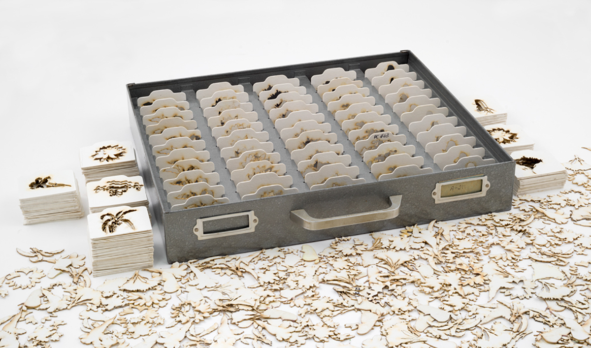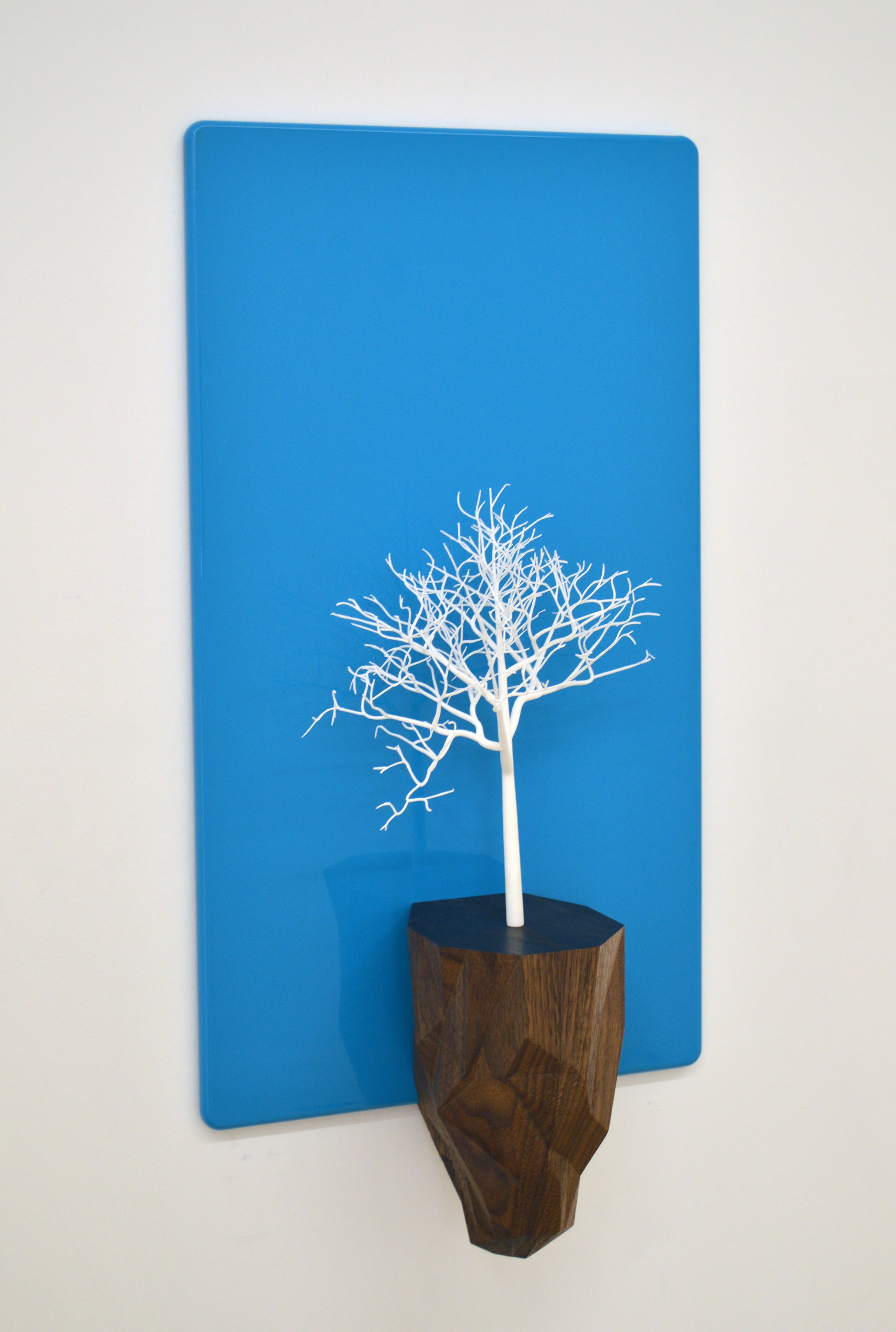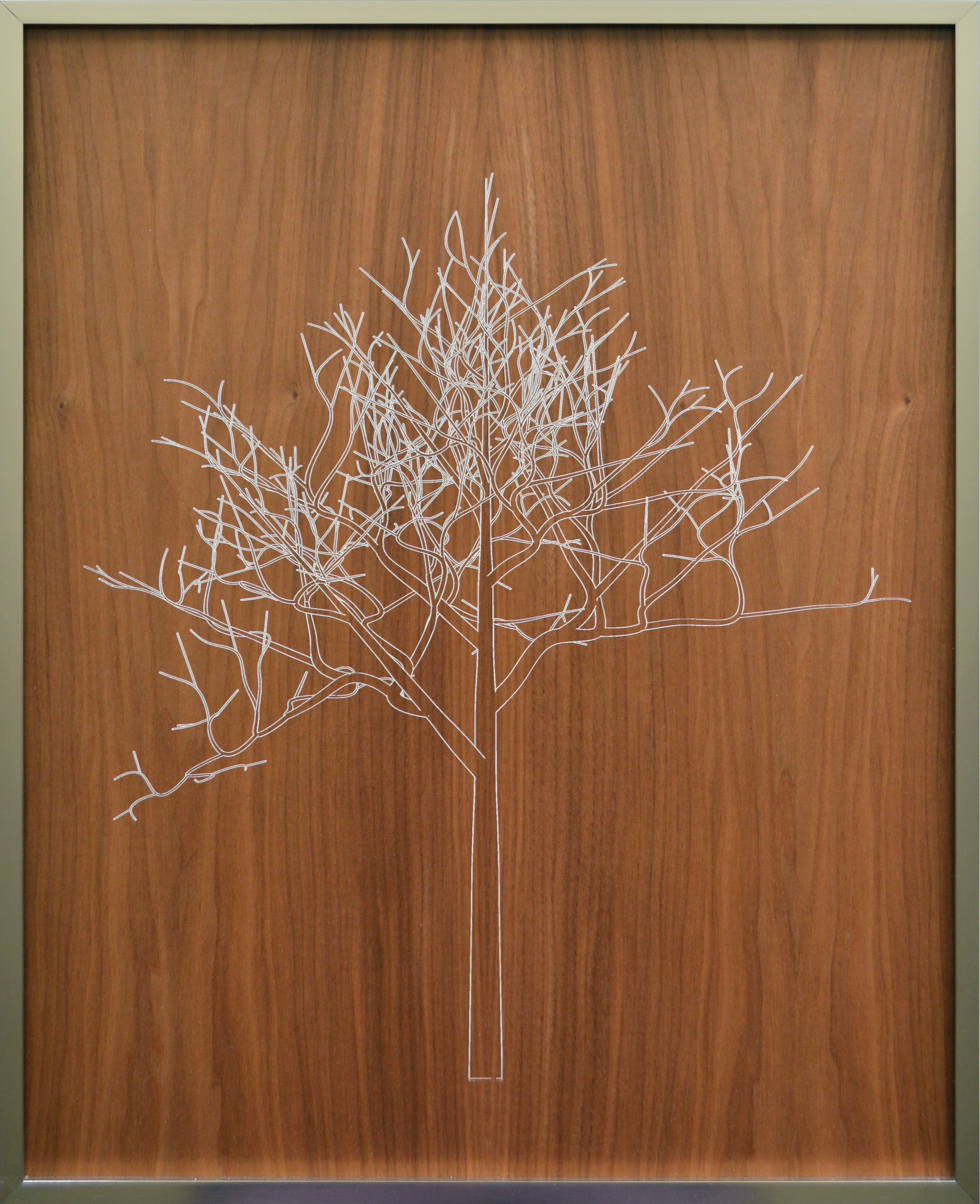 Growth patterns, on the macroscale, were derived from academic research and extensive observation. These patterns were translated into an algorithm embedded in a CAD program. Through the manipulation of multiple inputs, a near infinite variety of trees can be made, resembling a wide range of different species. These trees are then 3D printed in nylon and displayed as components of digitally fabricated sculptures, or they are converted into drawings that are etched into walnut plywood with a laser cutter and in-filled with paint.