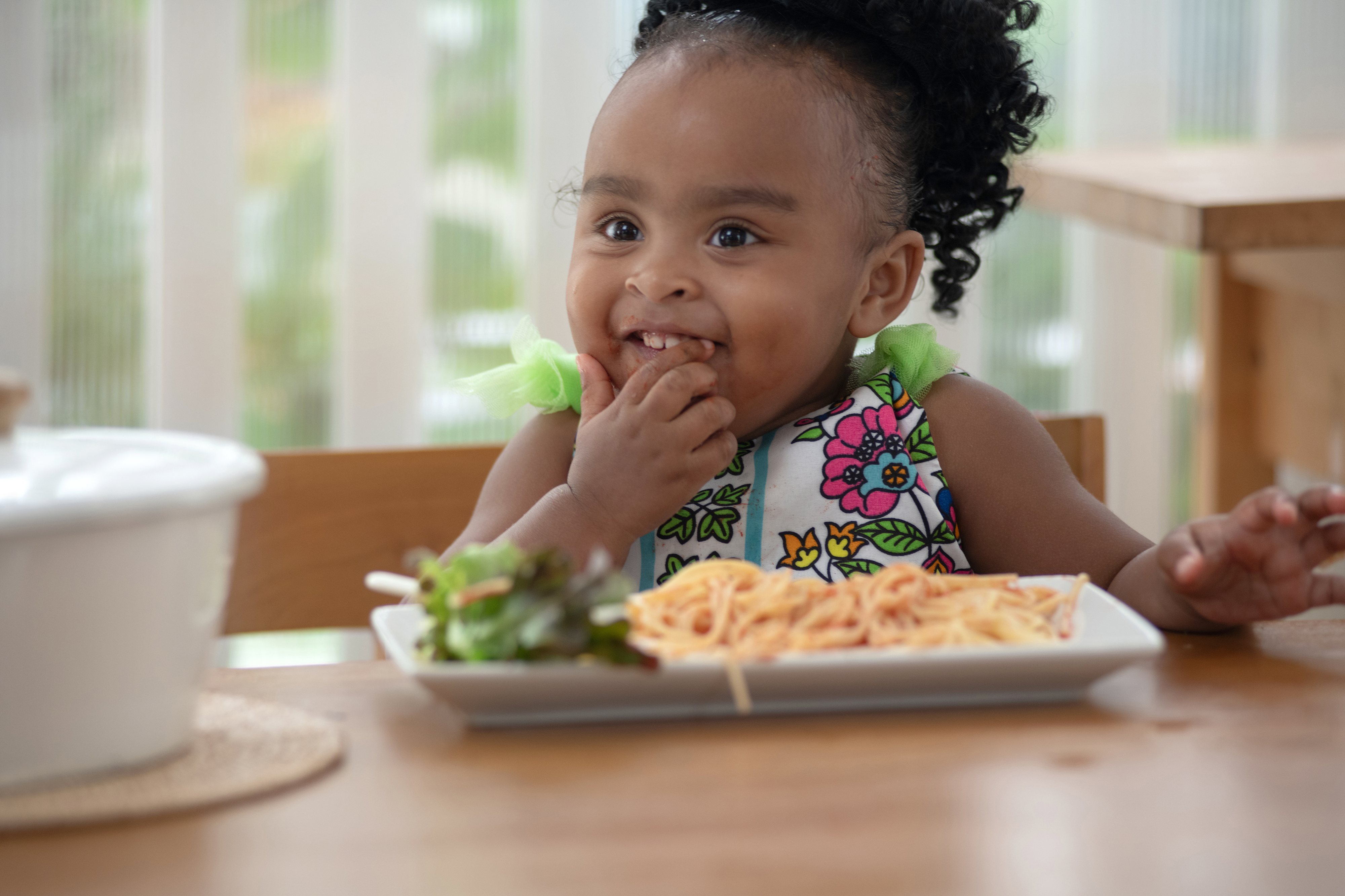 Pan up from sneakers to shot of child