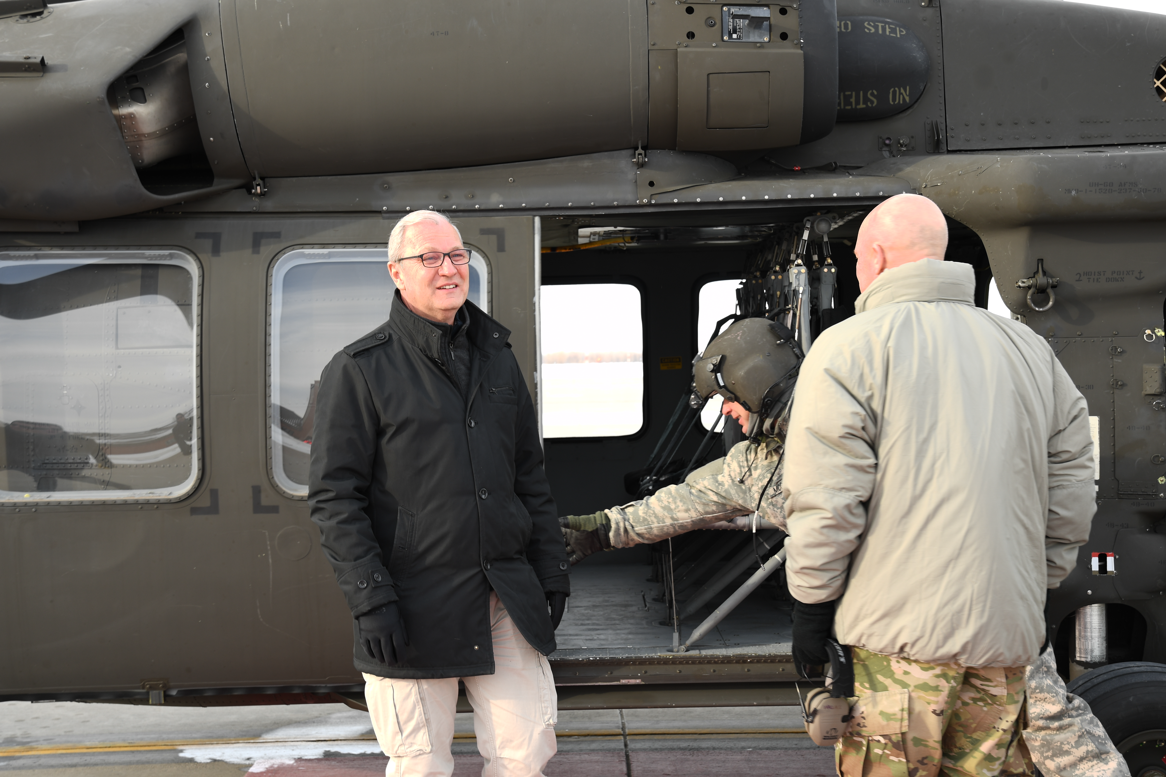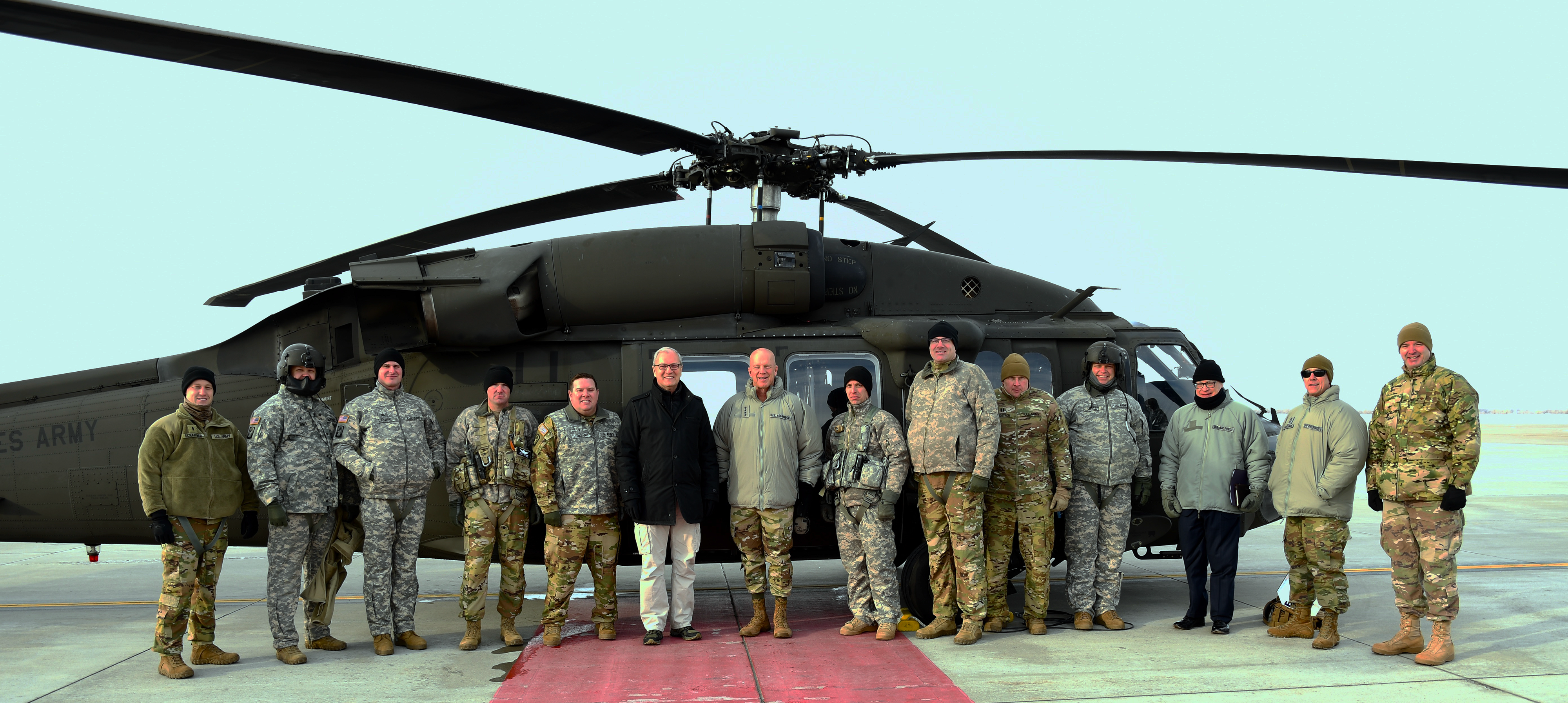 On Jan. 10, N.D. Army National Guard aviators were tasked to transport U.S. Sen. Kevin Cramer and the recently designated commander of U.S. Space Command, Gen. John Raymond and staff, from Grand Forks Air Force Base to Cavalier Air Force Station (CAFS) for a command visit. The mission called for two UH-60 Black Hawks which flew in wind chill temperatures of negative 25 degrees. CAFS staff said these were the first helicopters to land at the air station in 15 to 20 years.