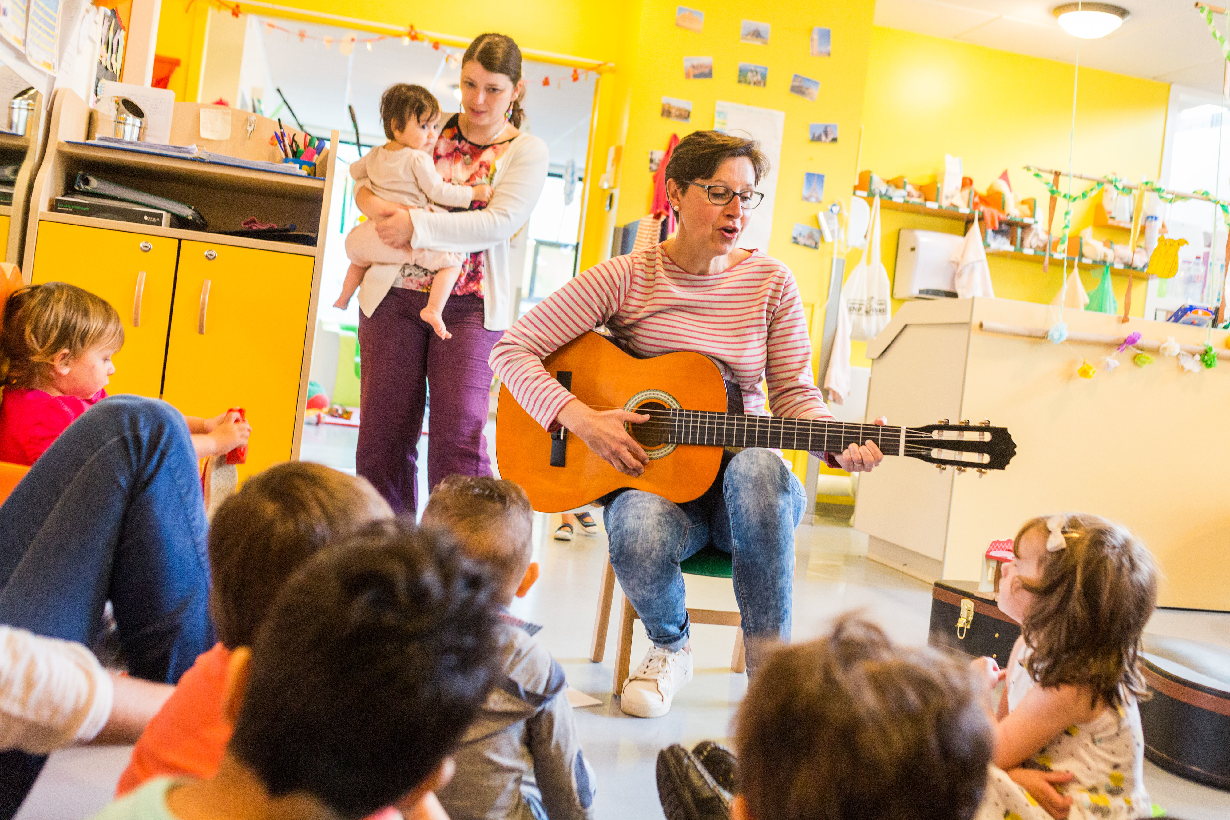 Dans une crèche ou halte-garderie, les horaires sont réguliers mais décalés (à partir de 7 heures le matin jusqu’à 19 heures le soir).